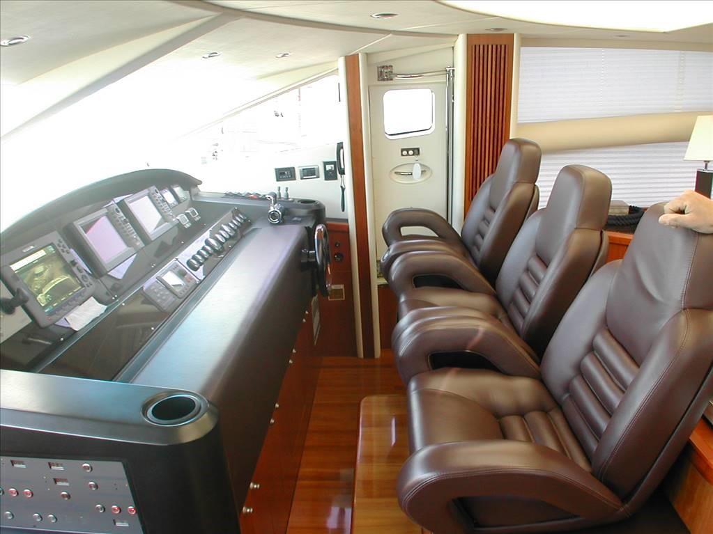 Angolo barra, Antenna radar, Comando motori elettronico, Computer di bordo, Display, GPS (Cartografico colore Furuno Multidisplay), Plotter con antenna GPS, Radar (Furuno 48 mg con sistema anticollisione).