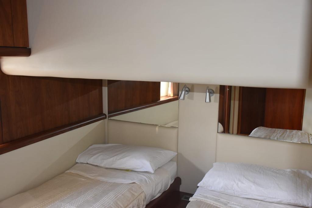 BBQ/ Grill, Boiler, Clima reversibile, Collegamento internet, Dissalatore, Impianto acque nere, Pavimento interno in legno, Prese interne 12v, Prese interne 220v, Serbatoio Acque Nere, Telecamera, WC marino elettrico.