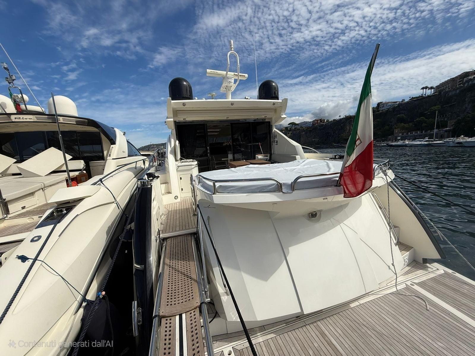 Allarme motore, Allarme sentina, Alternatore, Autoclave, Camminamenti laterali in teak, Doccia esterna, Flap idraulici, Garage per tender, Hard top, Impianto antincendio, Indicatori Flaps, Lavaggio catena, Lavandino nel Pozzetto, Luci di cortesia, Luci subacquee, Passerella, Piattaforma, Pompa di sentina automatica, Pompa di sentina manuale, Ponte in teak, Porta ingresso, Pozzetto Teak, Presa 220V banchina, Presa acqua banchina, Salpa Ancore Elettrico, Scaletta da bagno, Tavolo pozzetto, Tavolo Salone Abbattibile, Tender, Tromba, 2 Winch tonneggio di poppa, Winch tonneggio di prua.