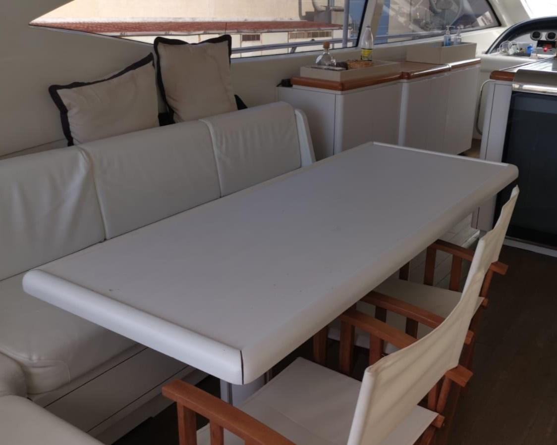 Allarme motore, Allarme sentina, Alternatore, Autoclave (agosto 2024), Batterie (Litio agosto 2024), Doccia esterna, Faro orientabile, Flap idraulici, Garage per tender, Gruette per tender, Hard top, Impianto antincendio, Indicatori Flaps, Lavaggio catena, Lavandino nel Pozzetto, Luci di cortesia, Luci subacquee, Passerella, Piattaforma, Pompa di sentina automatica, Pompa di sentina manuale, Porta ingresso, Pozzetto Teak, Presa 220V banchina, Presa acqua banchina, Raddrizzatore, Salpa Ancore Elettrico, Scaletta da bagno, Tavolo pozzetto, Tromba, Winch tonneggio di poppa, Winch tonneggio di prua.