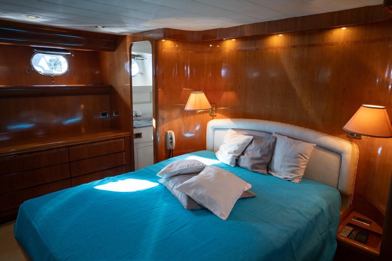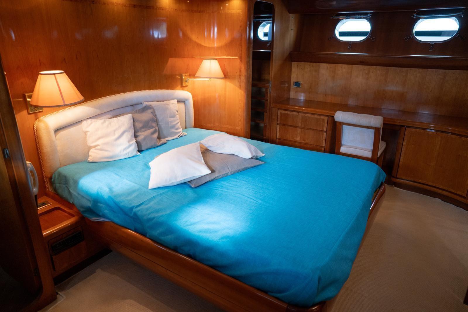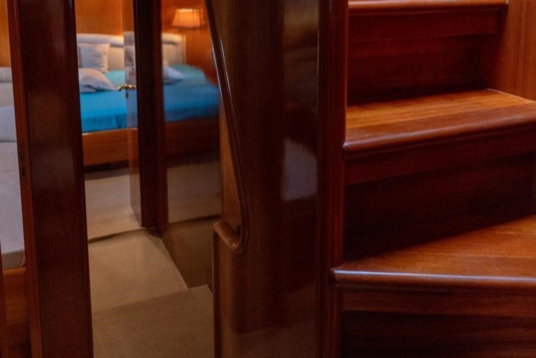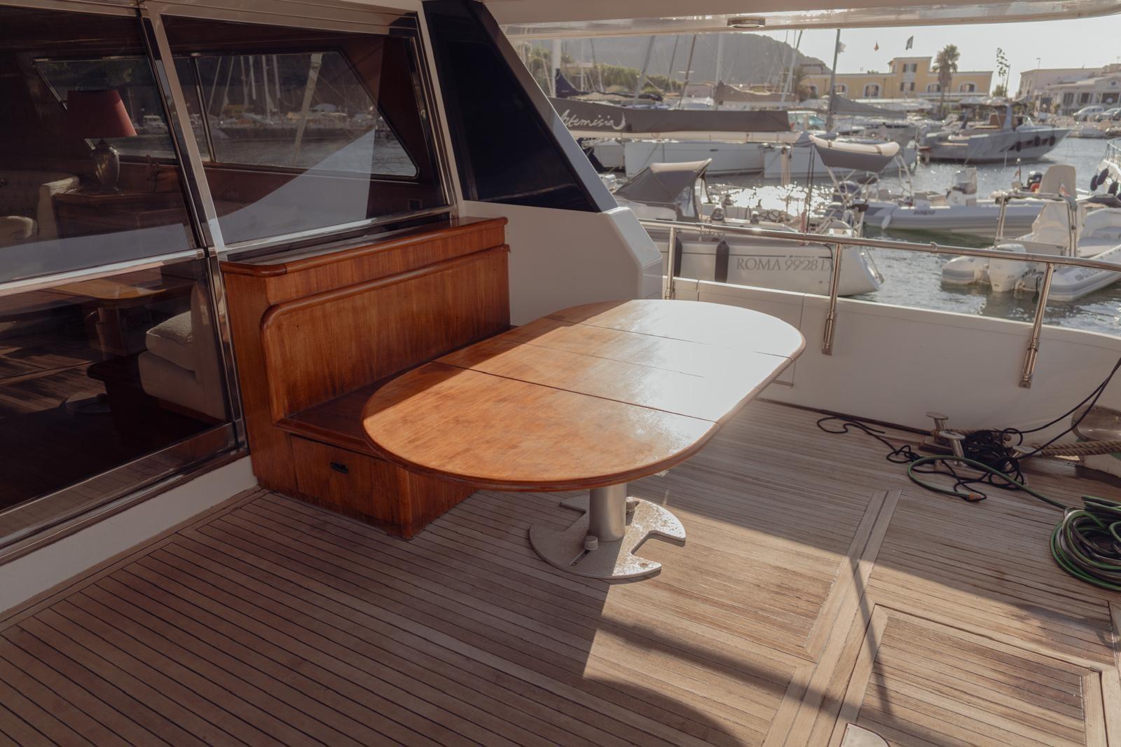 Antenna satelittare, Aria condizionata, Asciugatrice, Autoclave, Autopilota, Barometro, Batterie, Binocolo, Boiler, Bussola, Cuscineria completa, Dissalatore, Doccia esterna, Ecoscandaglio, Frigo e piastra elettrica su fly, GPS, Igrometro, Impianto antincendio fisso in vano motori, Indicatore angolo barra, Tv, Lavastoviglie, Lavatrice, Lettore dvd, Log, Pompe sentina (2 elettriche, 1 manuale), Passerella, Radar, Radio VHF, Salpancora, Stereo, Tavolo con sedute in pozzetto, Tendalino, Tender, Winch tonneggio di poppa