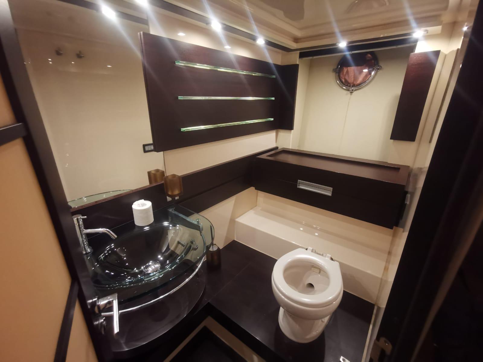 Acqua Calda, BBQ/ Grill, Boiler, Clima reversibile, Dissalatore, Impianto acque nere, Indicatore del serbatoio del carburante, Indicatore del Serbatoio dell’Acqua, Pavimento interno in legno, Prese interne 12v, Prese interne 220v, Serbatoio Acque Nere, 4 WC marino elettrico.