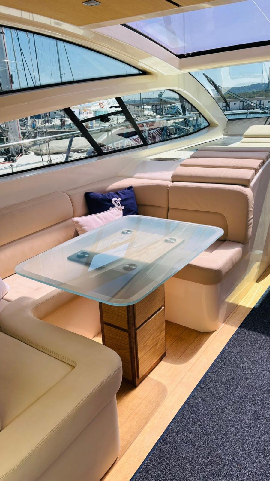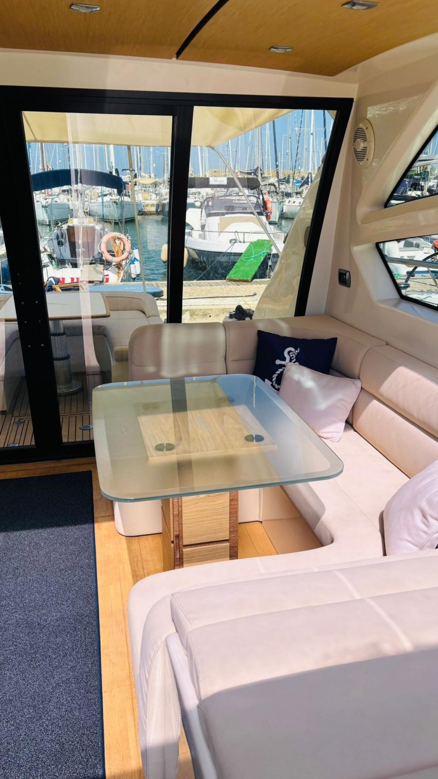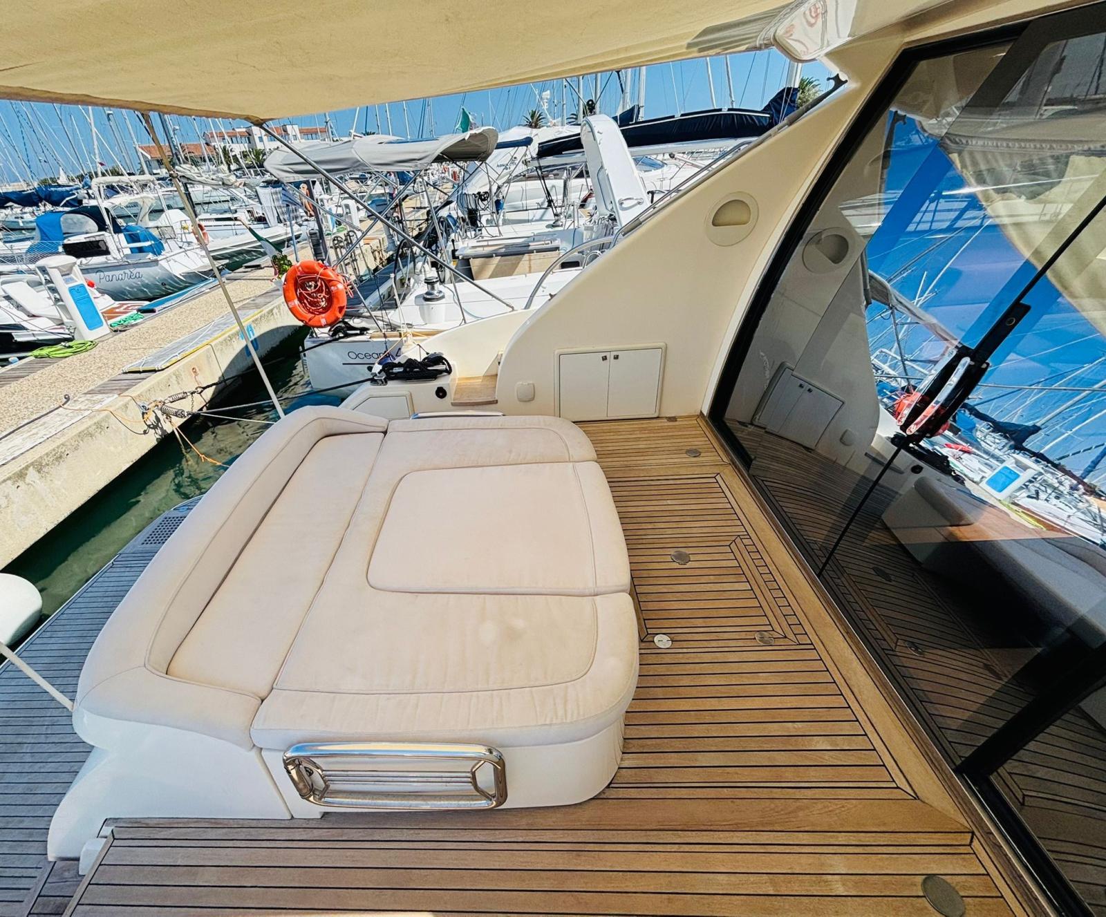 Allarme motore, Allarme sentina, Alternatore, Autoclave, Camminamenti laterali in teak, Cavo corrente di banchina, Doccia esterna, Faro orientabile, Flap idraulici (BENNET - CON INDICATORE DI POSIZIONE), Garage per tender (Con apertura elettrica), Hard top, Luci subacquee, 2 Pannelli Solari (Montati sull’hard top), Passerella, Pompa di sentina automatica, Porta ingresso, Pozzetto Teak, Presa 220V banchina, Salpa Ancore Elettrico, Tavolo pozzetto, Tender (Con fuoribordo Johnson 2,5).