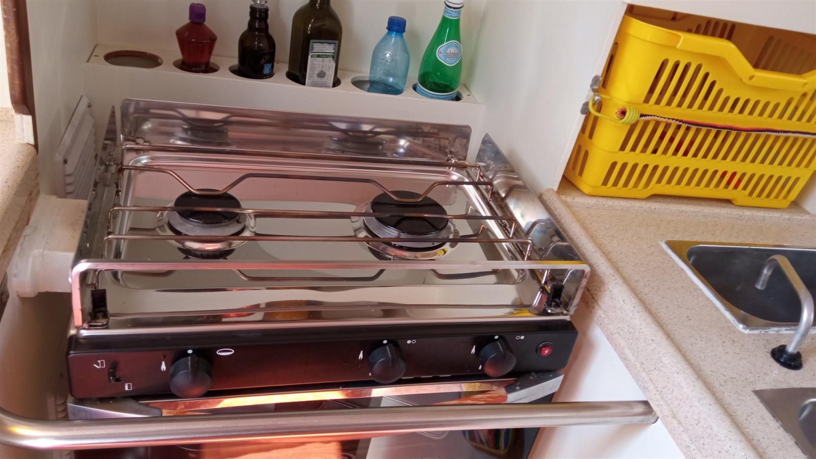Cucina (A GAS ENO BASCULANTE CON 2 FUOCHI), Frigorifero interno (A POZZETTO).
