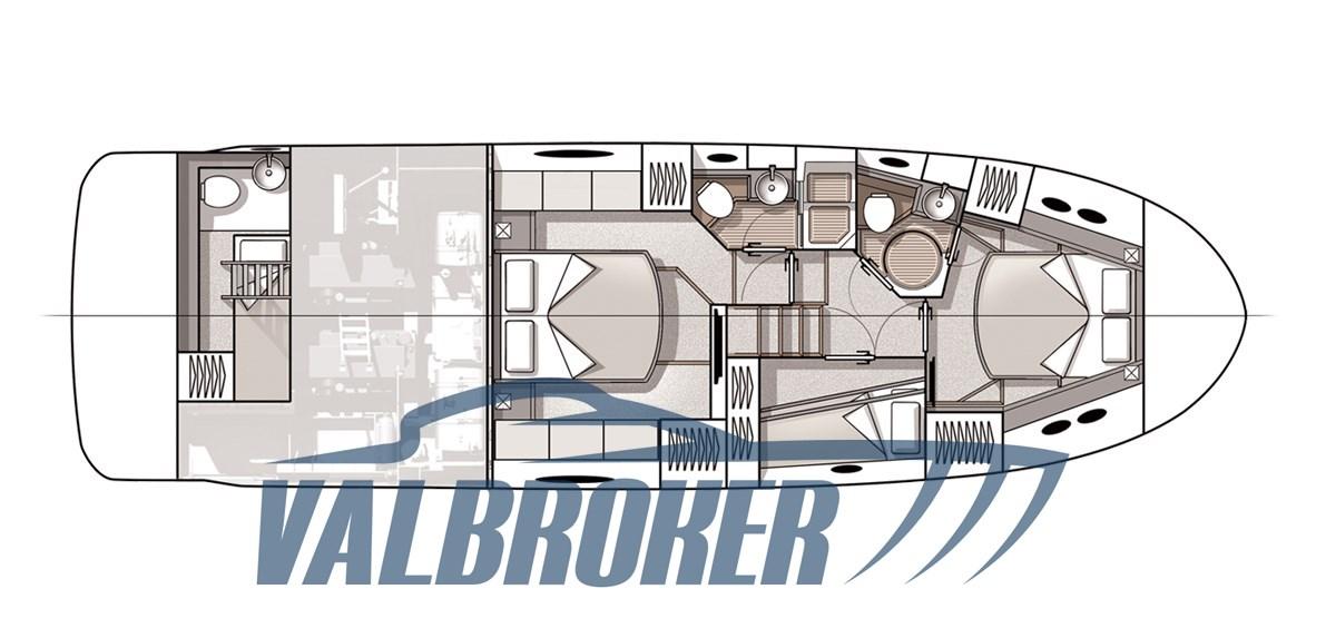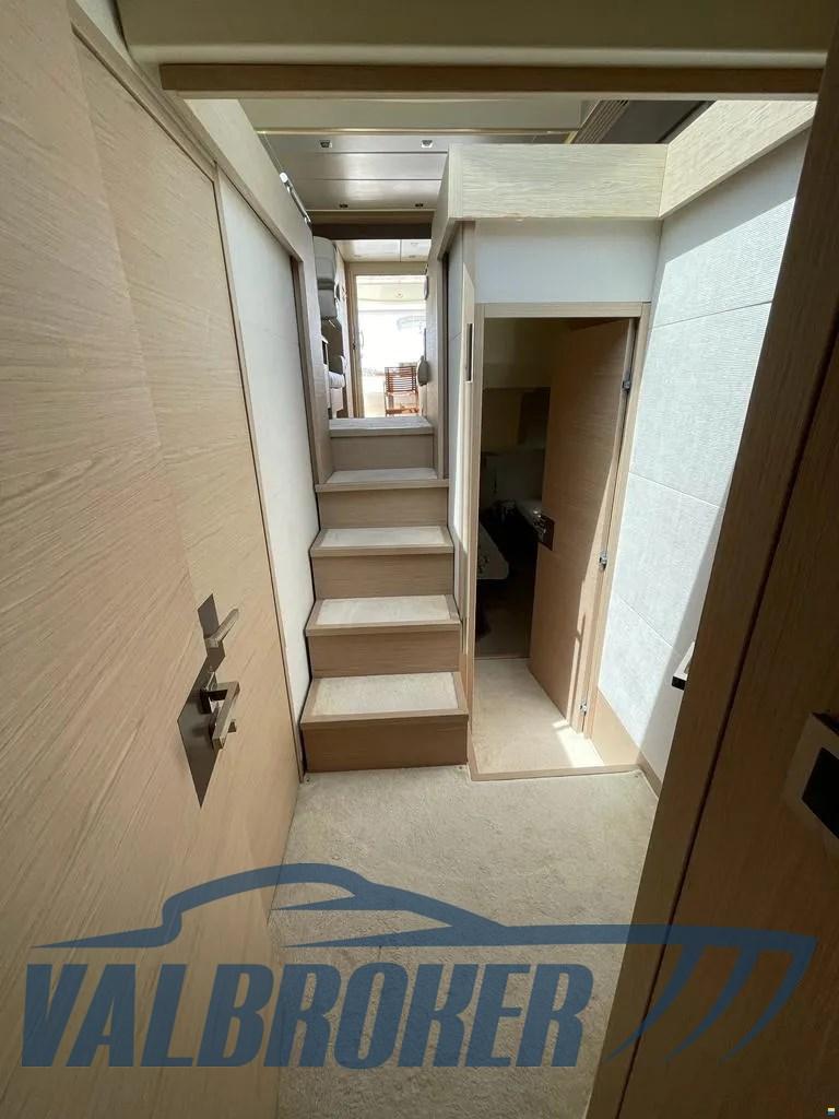 Flybridge che si distingue per l’eleganza dei suoi tessuti, la cura nei dettagli e il design italiano perfettamente riuscito. Tre cabine doppie con doppi servizi.