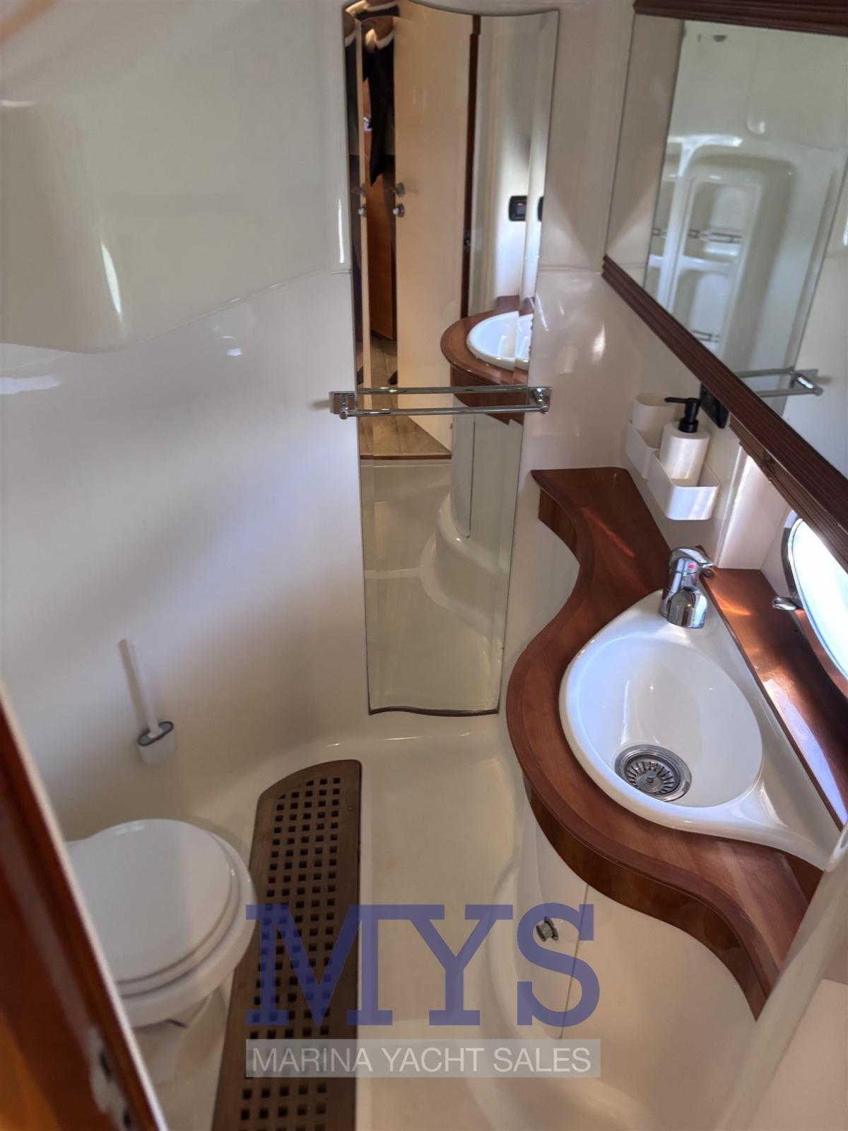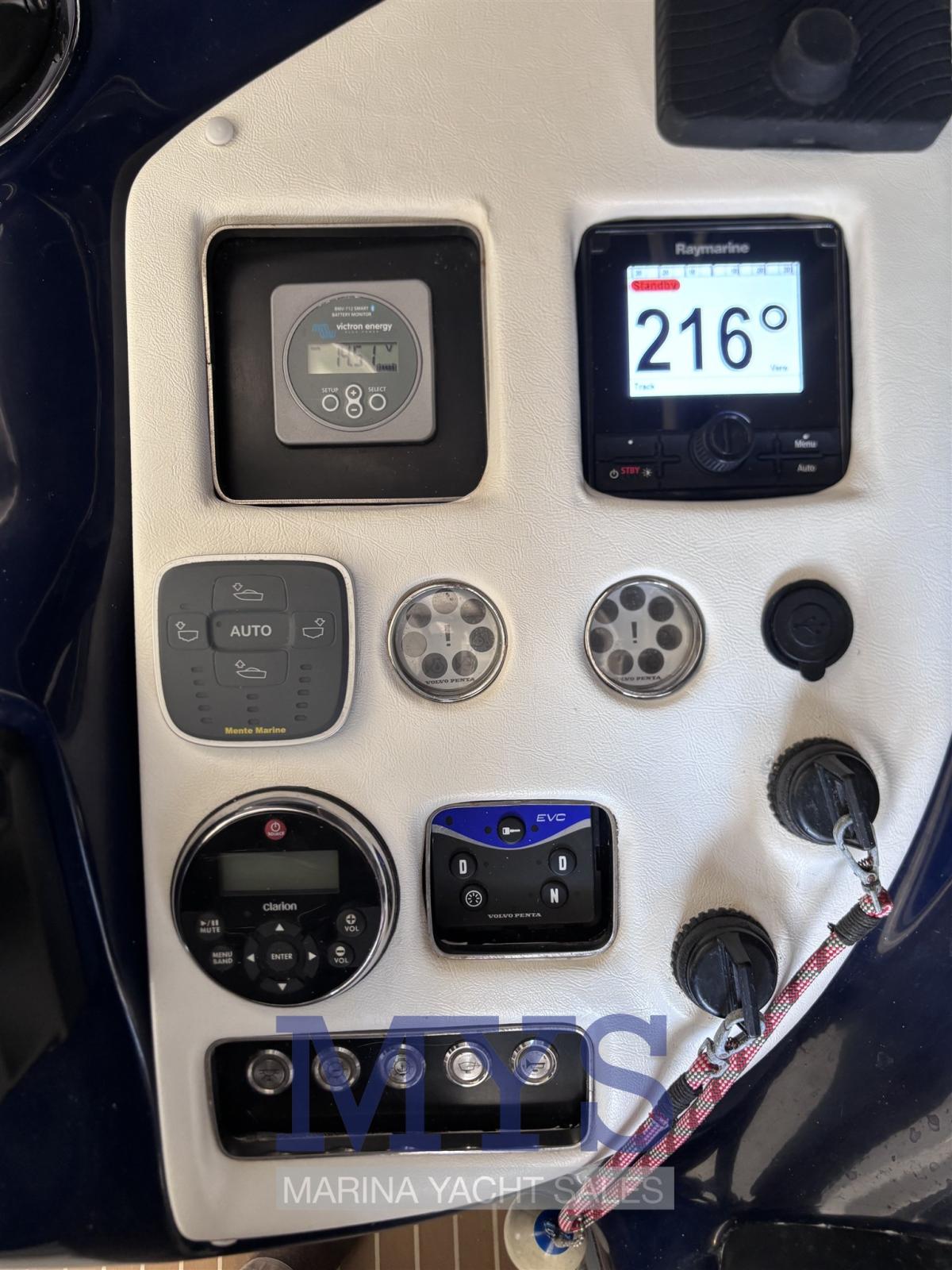La barca è equipaggiata con due Volvo Penta D6 da 310 hp, motori affidabili ed efficienti, noti per consumi contenuti, ottime prestazioni e facilità di manutenzione.