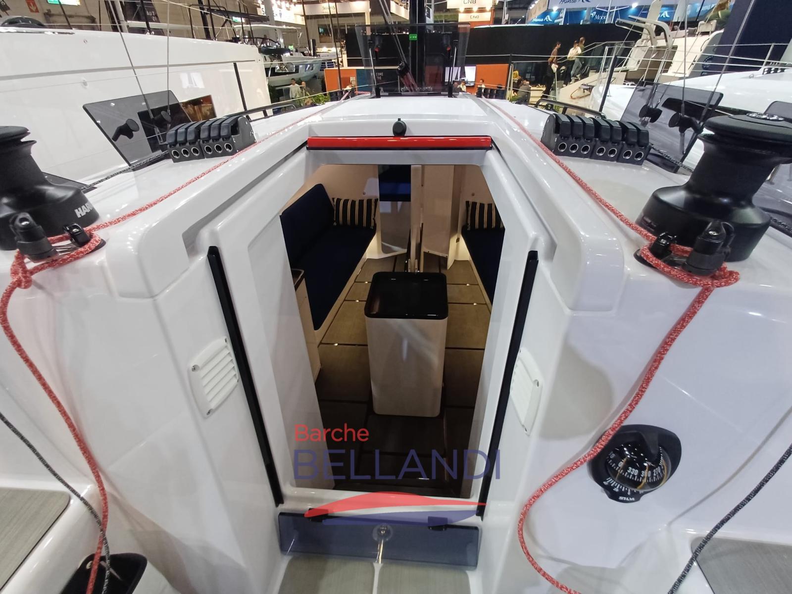 Winches: Configurazione standard con winches Harken Performa, posizionati ergonomicamente per una gestione fluida delle scotte anche sotto sforzo.