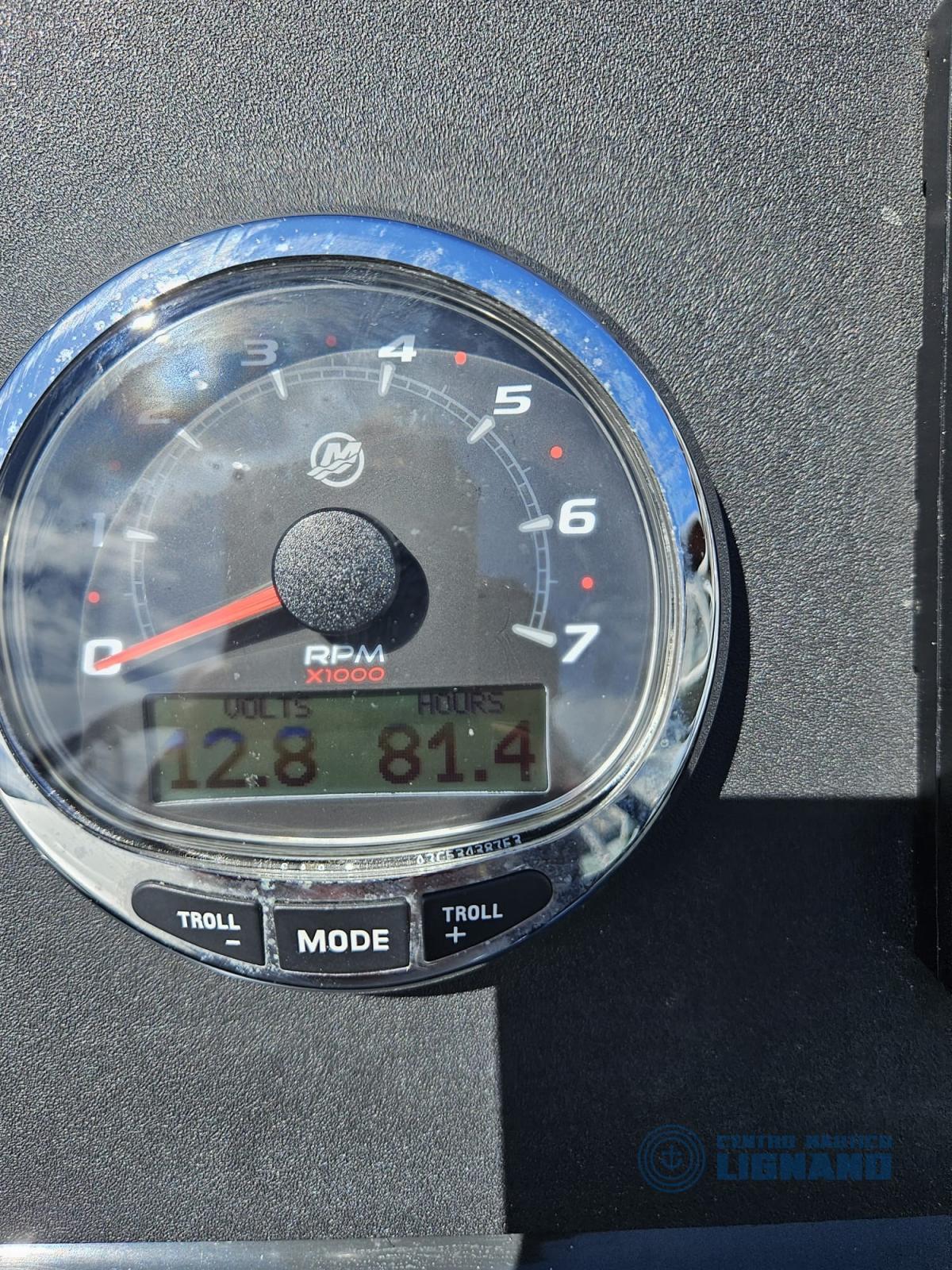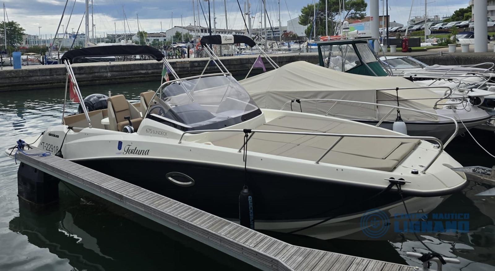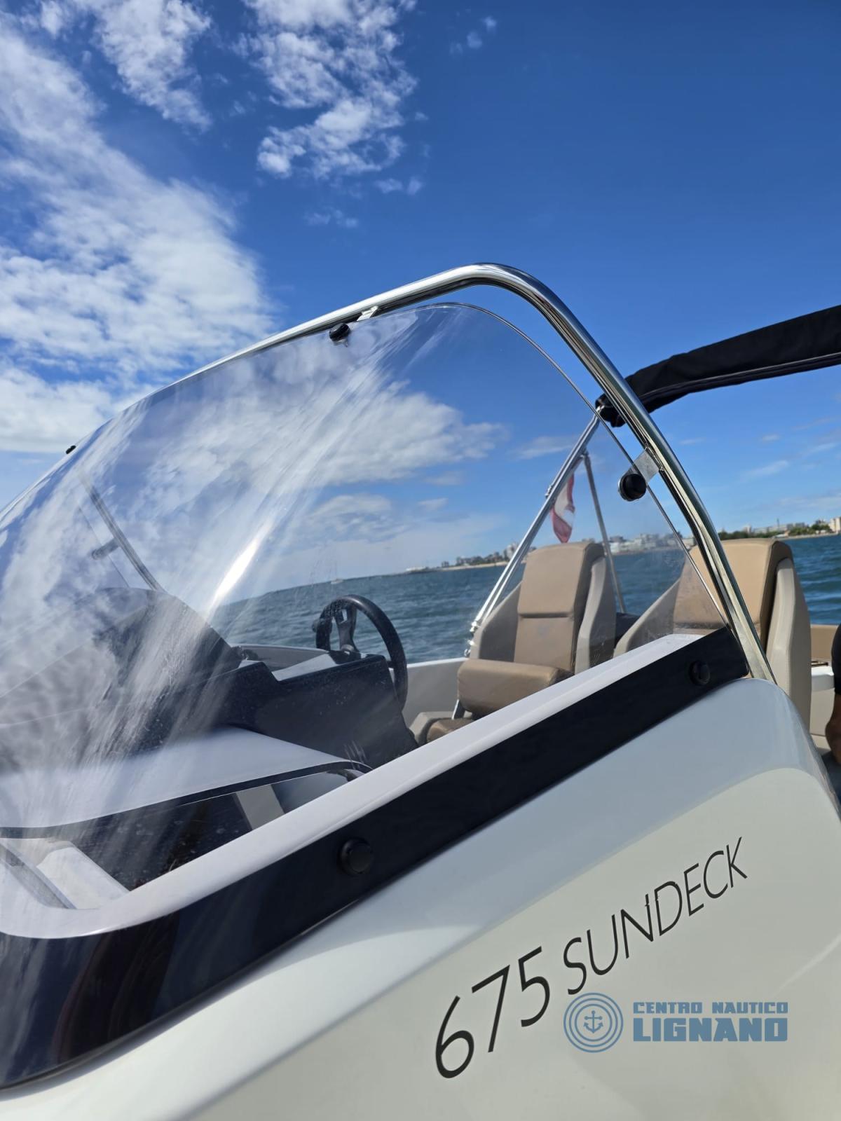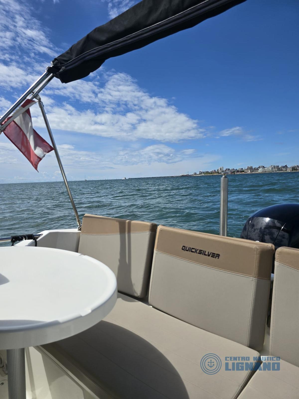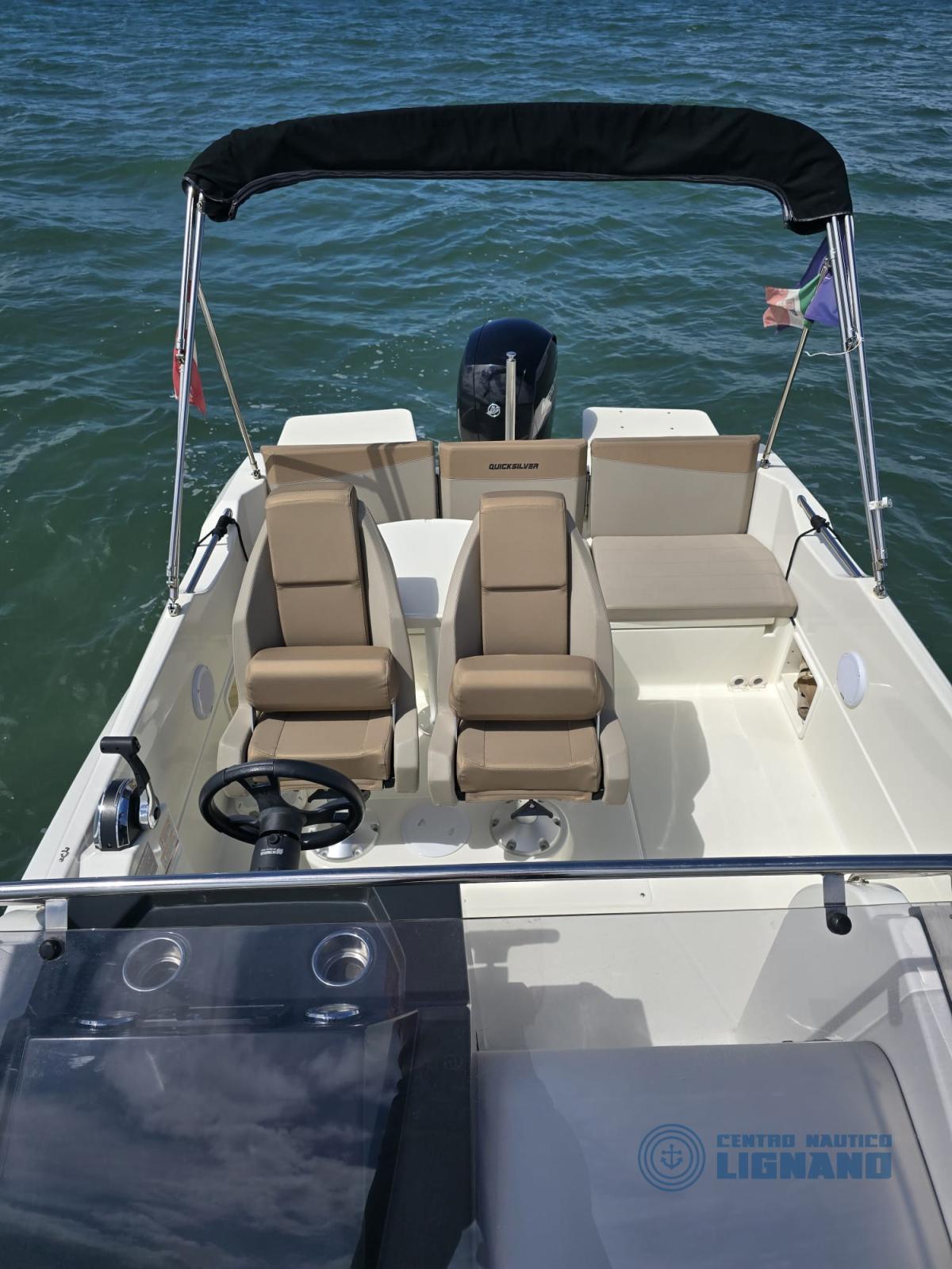 Barca Quicksilver 675 Activ del 2022 con motore Mercury F150 EXLPT EFI completa di tendalino, stereo Fusion con 2 casse, doccia in pozzetto, tavolo in pozzetto, verricello elettrico di prua, asta sci nautico, copertura console e sedili, estensione plancette di prua, carena colorata grigio scuro, GPA Garmin Eco 6", ancora, catena 30 mt. Barca completa e ben messa. Prezzo molto interessante. In agenzia.