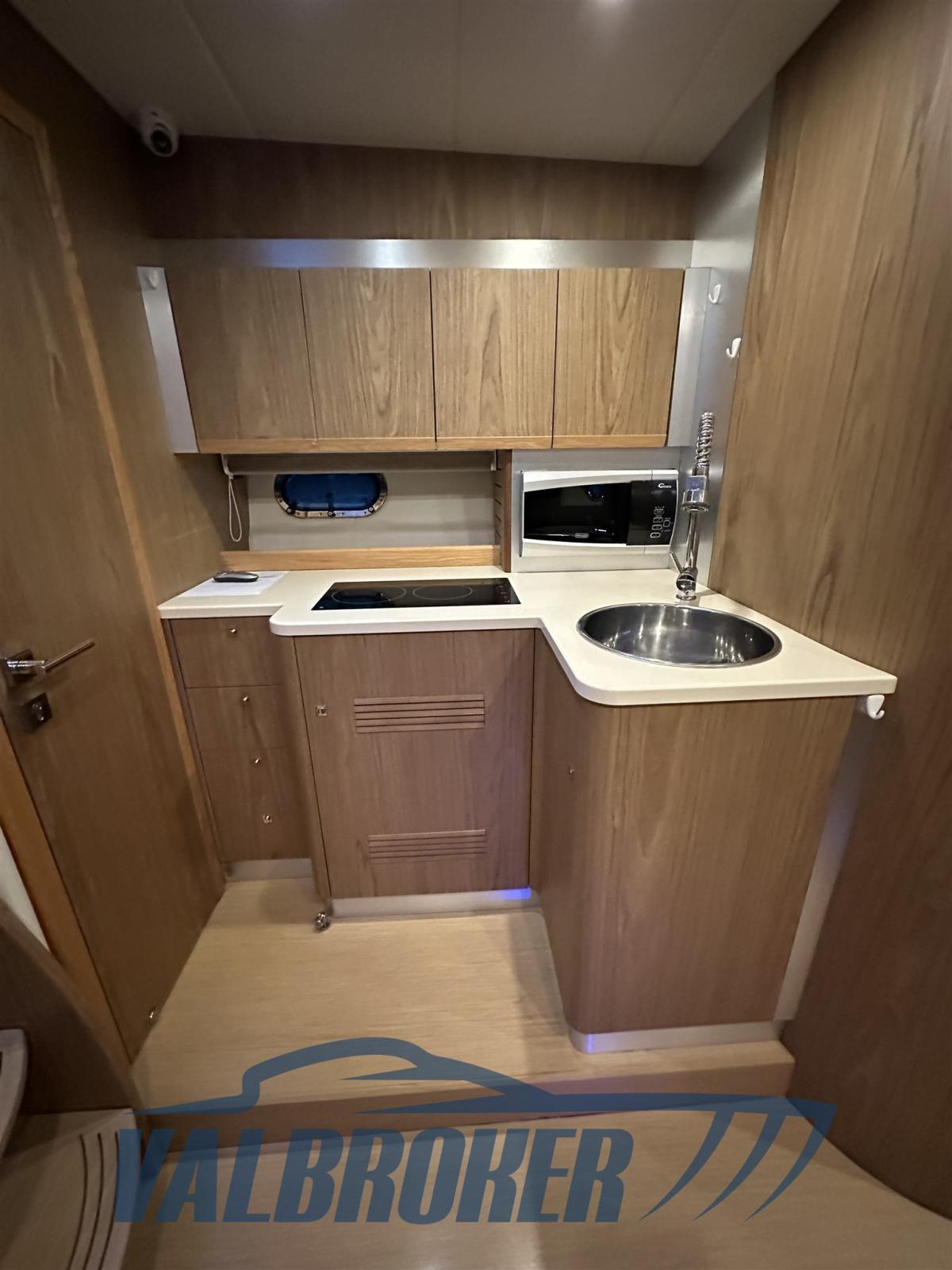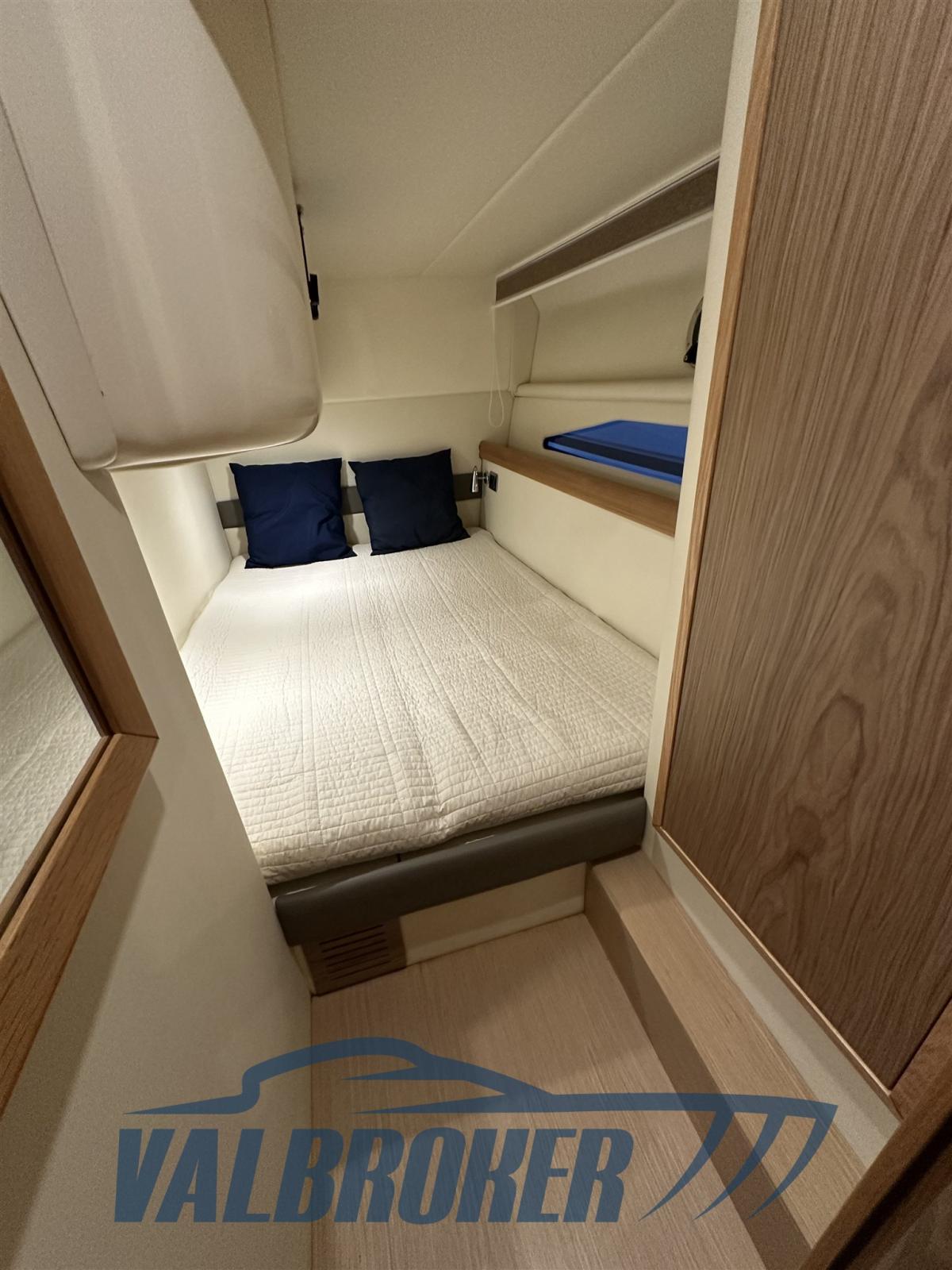 Pratico coupé con porta del cantiere del lago di Como con tre cabine in piano: matrimoniale a prua, cabina ospiti con due letti separati (unibili), cabina con letto alla francese e due bagni. Motorizza 2x IPS 600 Volvo Penta con Joystick e solo 600 ore di moto. Interni in legni chiari.