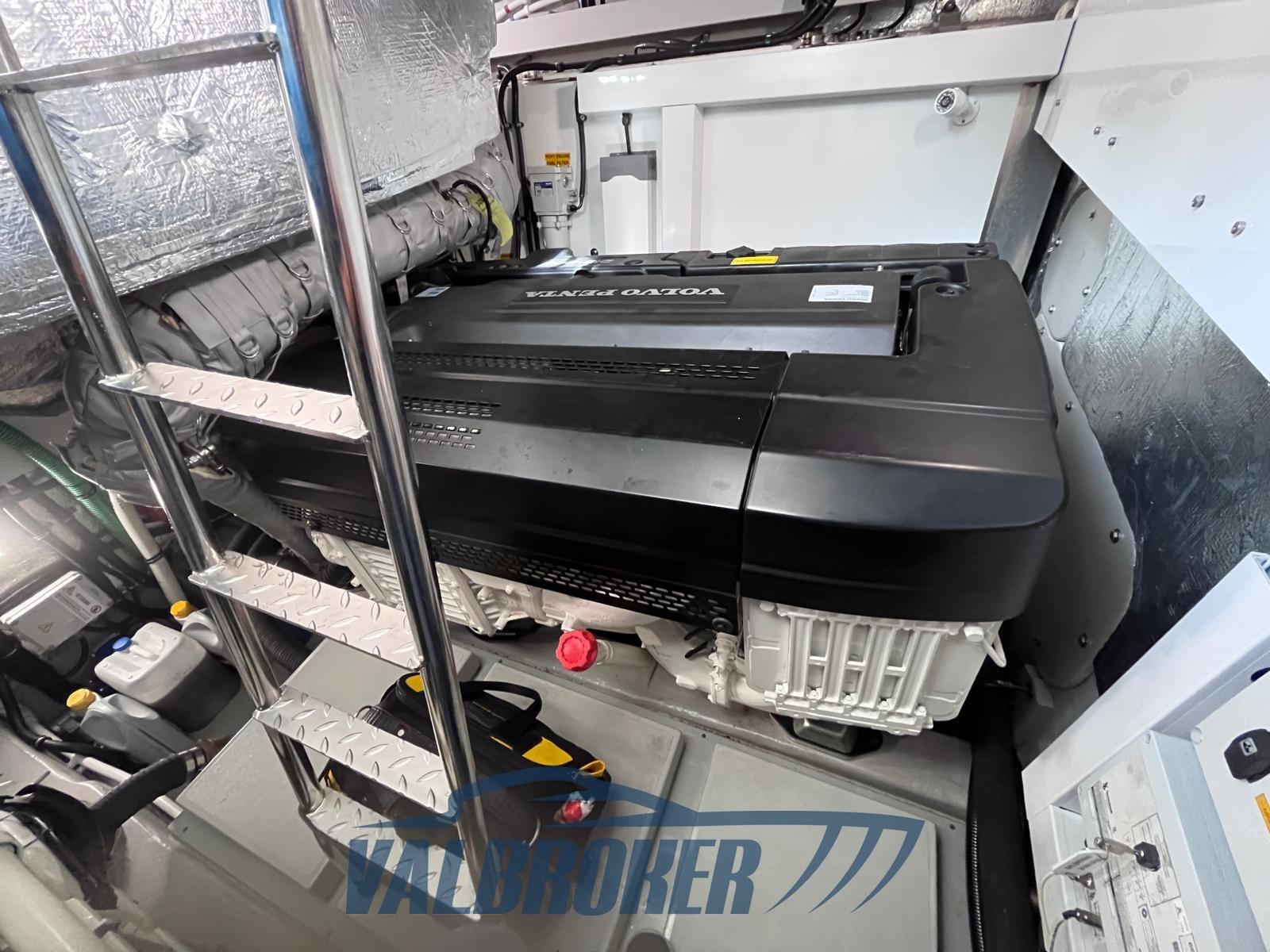 Prestazioni, eleganza e comfort. Prestazioni eccezionali in mare con i Volvo D13-900 con poche ore di moto. Porta scorrevole in vetro tra pozzetto e salone. Full optional: elica di prua e poppa, generatore, aria condizionata e riscaldamento, piattaforma tender-lift, garage per tender.