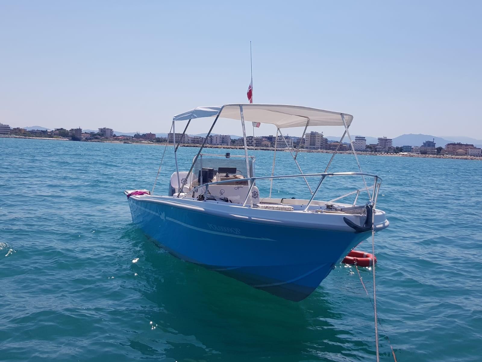 2 Batterie, Carrello (2 assi), Colorazione speciale (wrapping azzurro), Doccia esterna, Flap elettrici, Indicatori Flaps, Luci di cortesia, 2 Pompa di sentina elettrica, Salpa Ancore Elettrico, Scaletta da bagno.
