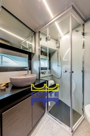 Cabina ViIP matrimoniale dotata di bagno con doccia separata che può essere utilizzato come bagno giorno.