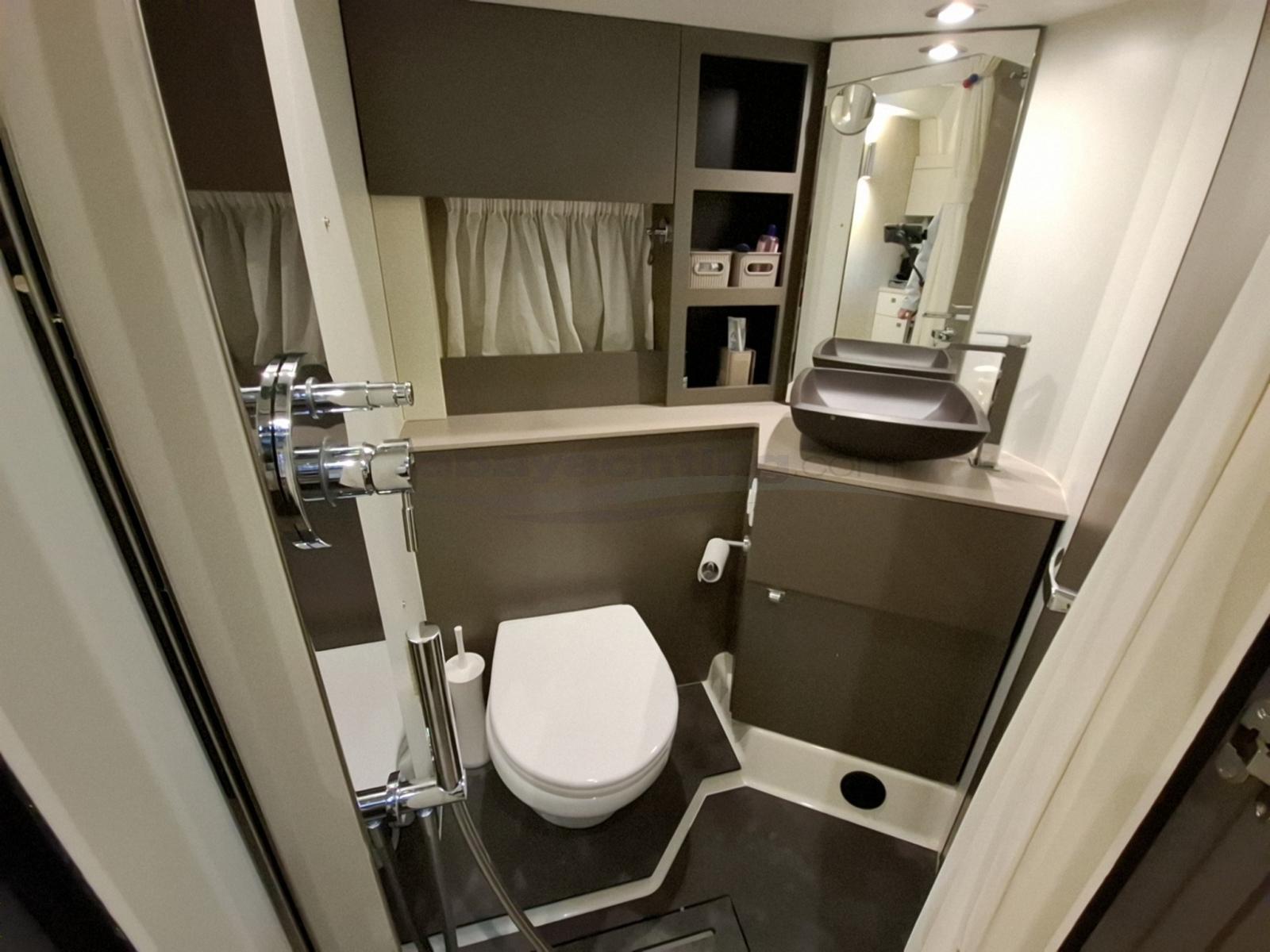 Acqua Calda, Boiler, Cassaforte, Clima reversibile (Convertibile da 16.000 BTU), Impianto acque nere, Indicatore del serbatoio del carburante, Indicatore del Serbatoio dell’Acqua, Indicatore del Serbatoio delle Acque Reflue, Indicatore della pressione dell’olio nel motore, Indicatore della temperatura del motore, Pavimento interno in legno (Legno chiaro), Prese interne 12v, Prese interne 220v, Serbatoio Acque Nere, Sistema Idrico, 2 WC marino elettrico.