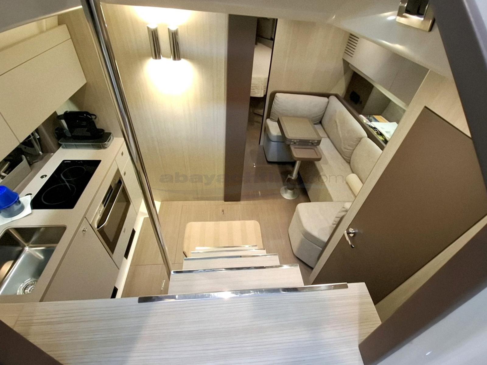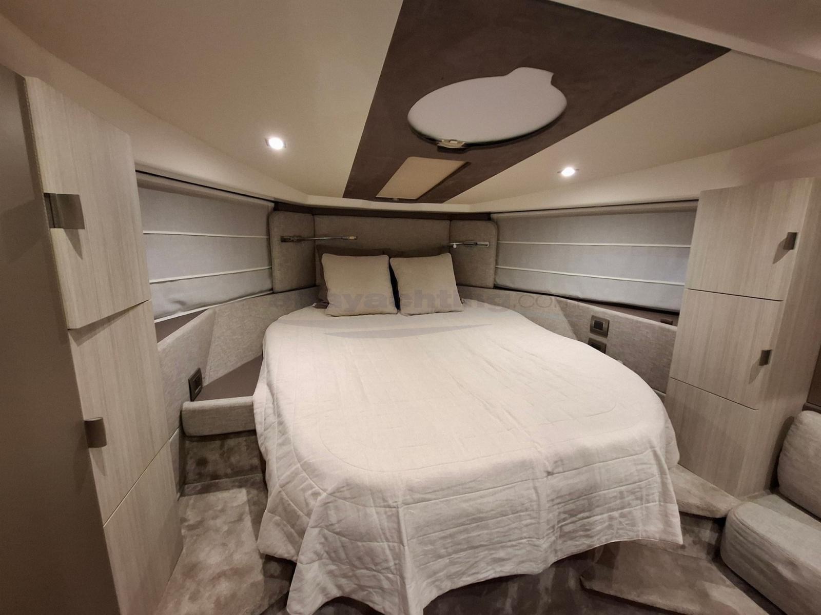Super accessoriata: generatore 220v, elica di manovra a prua, garage per il tender, climatizzatore reversibile da 16.000 BTU, correttori di assetto a lama della Volvo Penta, hard-top con tetto elettrico a doppia tela, tavolo del pozzetto telescopico, passerella idraulica Besenzoni illuminata, bimini ombreggiante per il prendisole di prua, tendalini completi per la chiusura del pozzetto, Wet Bar esterno con frigorifero e lavello, elettronica Raymarine completa di radar, pilota automatico e cruise control.