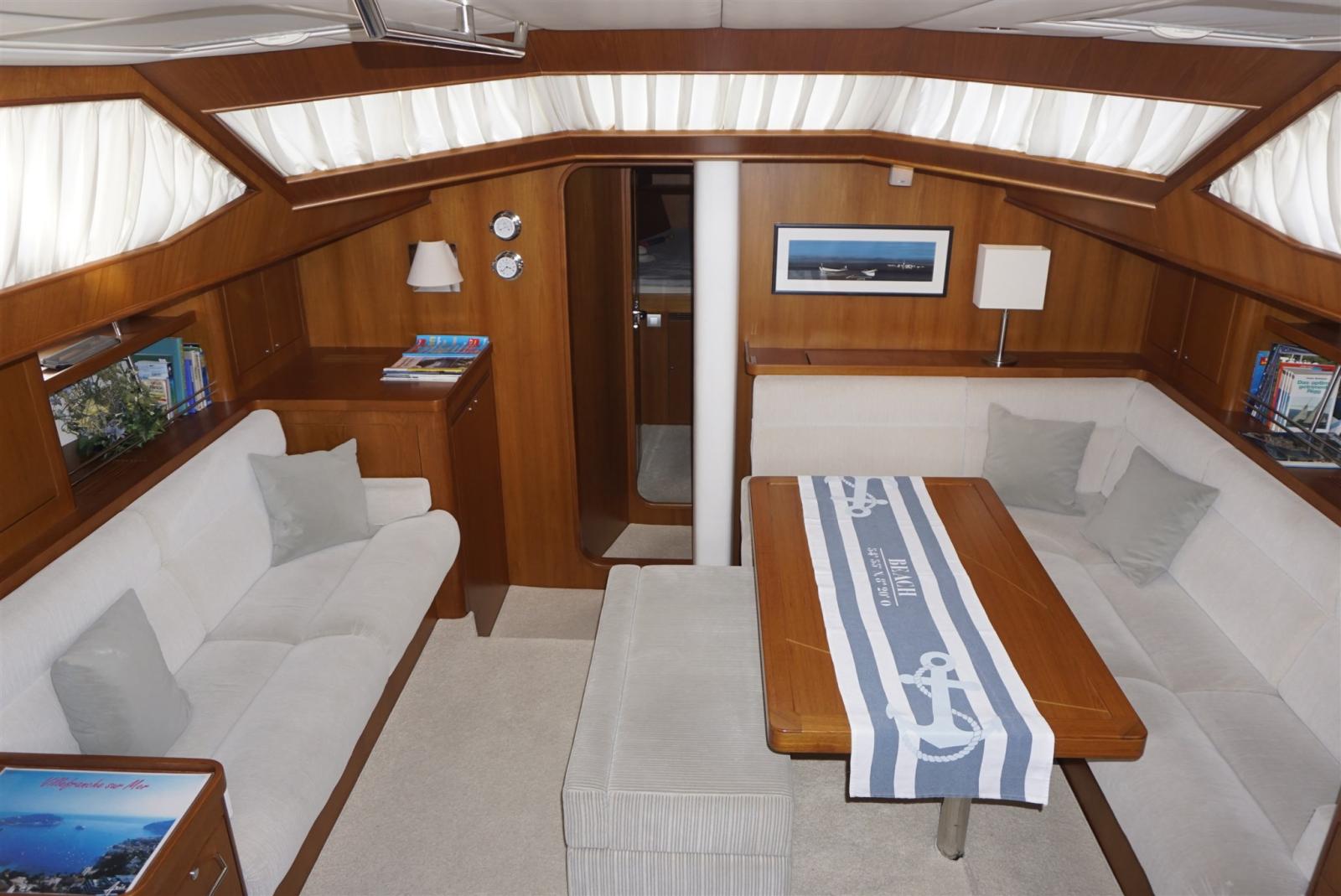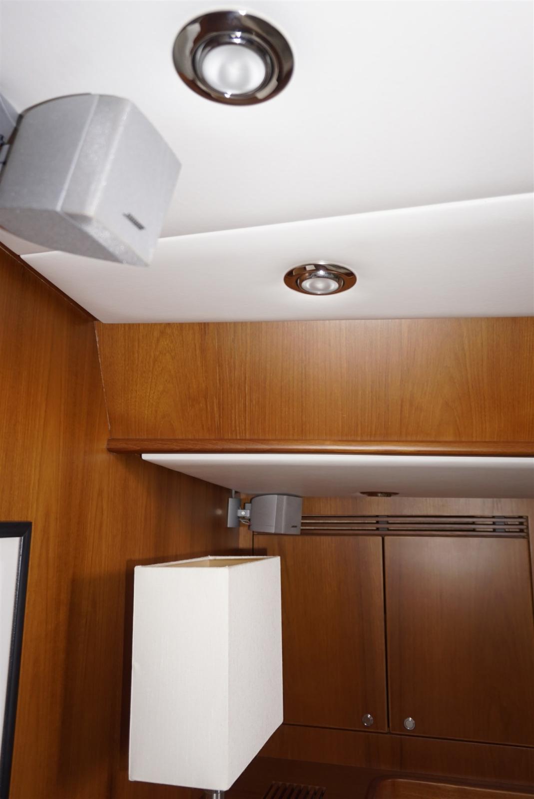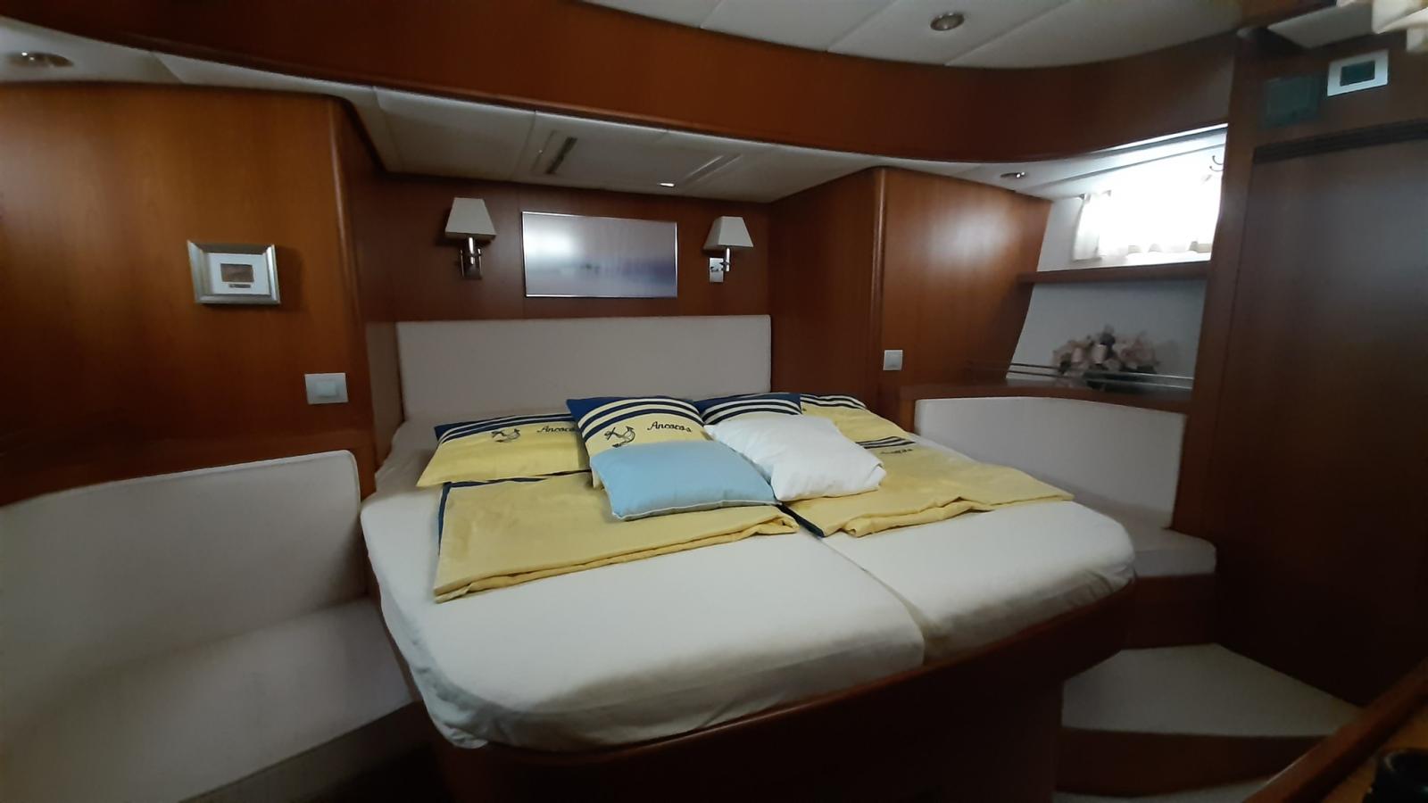 Bottazzo in legno con listello in inox, riflettore radar CYCLOPS II, strobe light e luce tricolore in testa d'albero, tutti oblò con oscuranti e zanzariere, elica 3 pale GORI, estrattore fumi in cuccina,