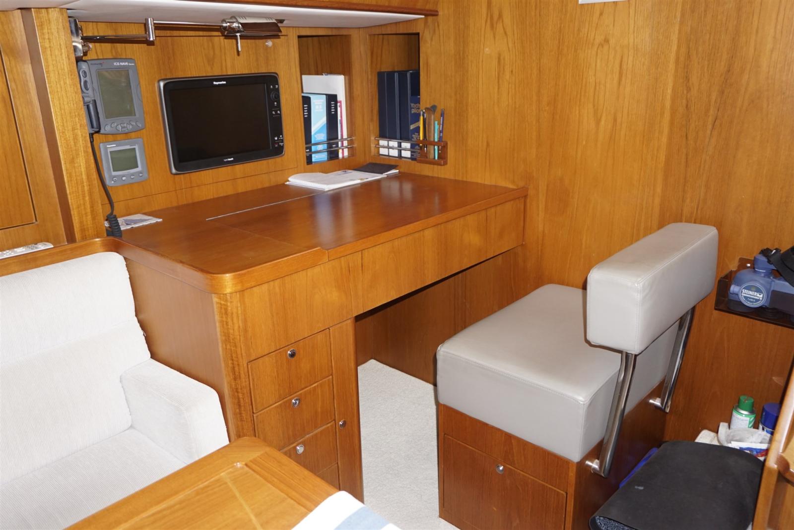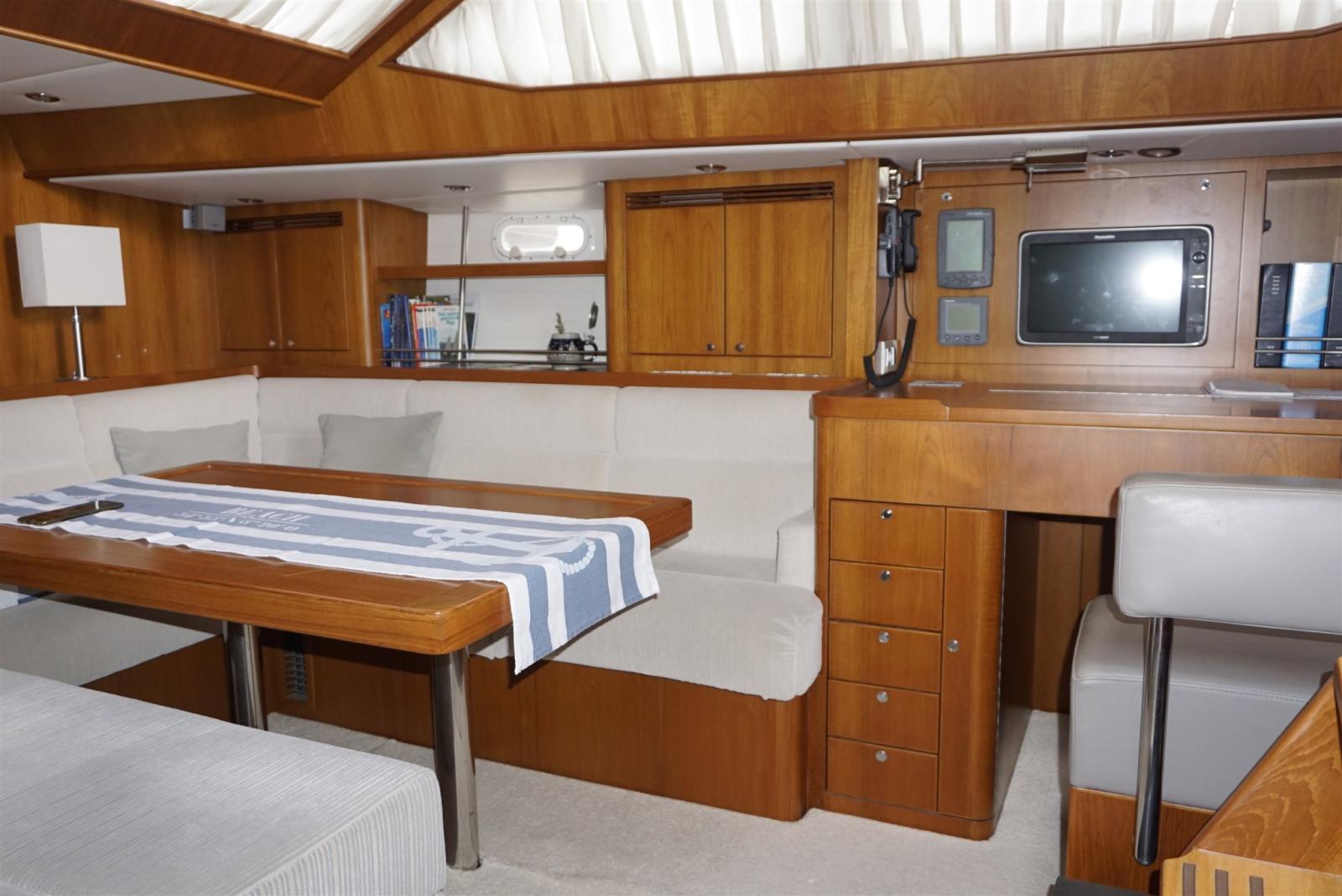 AIS (2025), Angolo barra, Antenna radar (RAYMARINE), Contamiglia (RAYMARINE ST60+), Display (RAYMARINE ST60+ charttable and owner's cabin), DSC vhf (RAYMARINE), Ecoscandaglio (RAYMARINE ST60+), Epirb (2025), GPS (RAYMARINE), Log (RAYMARINE ST60+), MeteoFax (Navtex ICS Nav 6a), Pilota automatico (RAYMARINE ST7001+ and remote control), Plotter (RAYMARINE E120 + E80), Radar (RAYMARINE), Stazione vento (RAYMARINE ST60+).