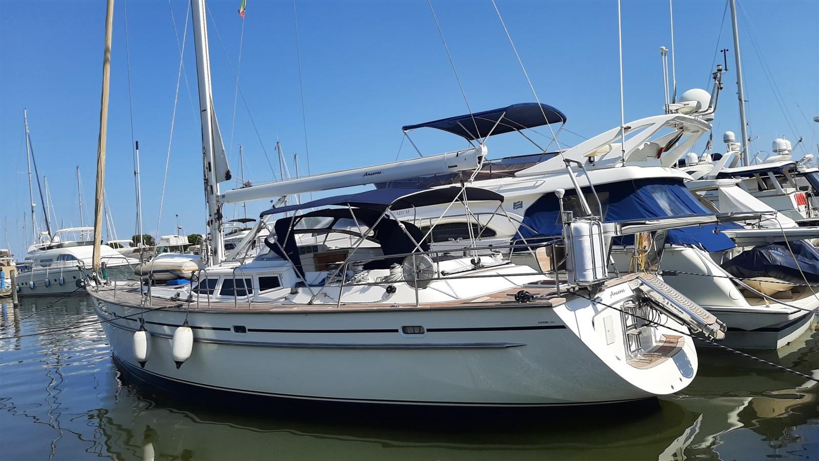 Allarme motore, Ancora (ULTRA Inox), Autoclave, Batterie (2026), Caricabatterie (MASTERVOLT Kombi 24V/4000W/60A), Doccia esterna (h/c), Elica di prua - bow thruster (SLEIPNER 24V, 10 hp, 25 cm), Gruette (SIMPSON 100), Gruette per motore fuoribordo (NOVALIFT), Luci di cortesia, Passerella (BESENZONI 2,35 m hydr), Pompa di sentina automatica, Pompa di sentina manuale, Ponte in teak (2025 new), Presa 220V banchina, Salpa Ancore Elettrico (+ Capstan, 100 m ss chain), Sartiame spiroidale (2025 new), Scaletta da bagno, Supporto motore fuoribordo (in stern locker), Tavolo pozzetto (Teak, with extension), Tender (WILLIAMS Jet 60 hp 10h), Tientibene con cancelletti, Tromba, Winch Elettrico (2 x LEWMAR 48 + 2 x LEWMAR 64), Windex.