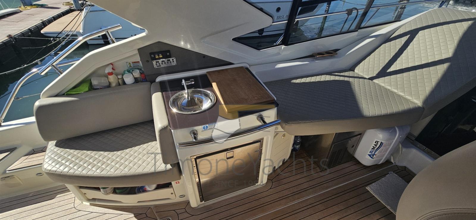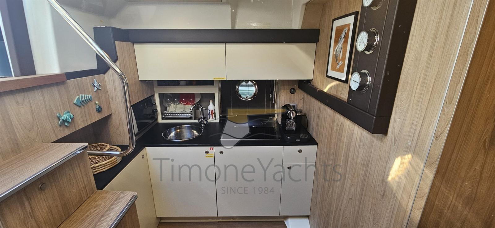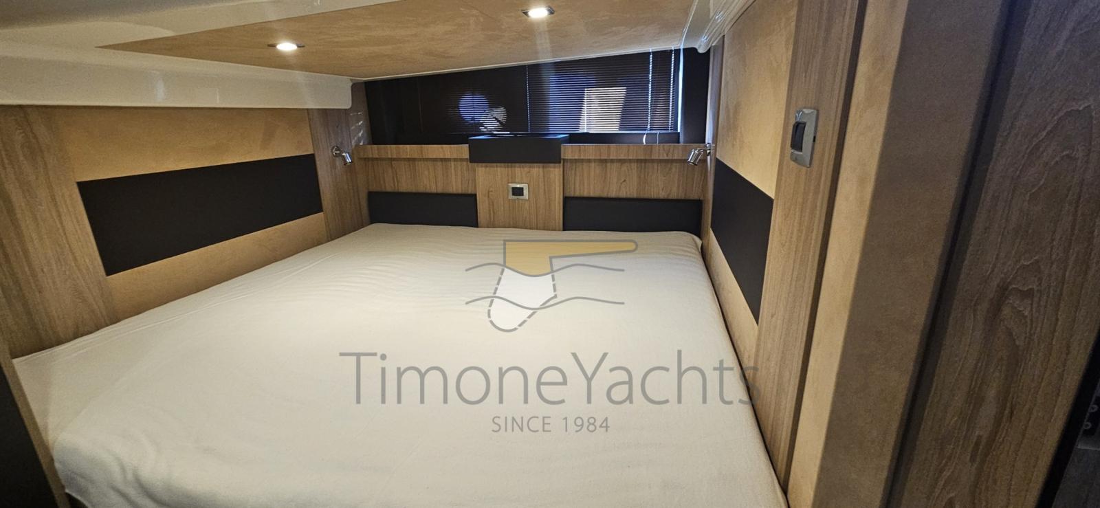 Ancora (acciaio inox), Auto-Trim, Camminamenti laterali in teak, Colorazione speciale, Faro orientabile, Garage per tender, Hard top (con soft top apribile elettrico), Lavandino nel Pozzetto, Luci di cortesia, Passerella (idraulica 3 sfili idraulica), Piattaforma (affondabile), Pozzetto Teak, Tavolo pozzetto, Tavolo Salone Abbattibile.