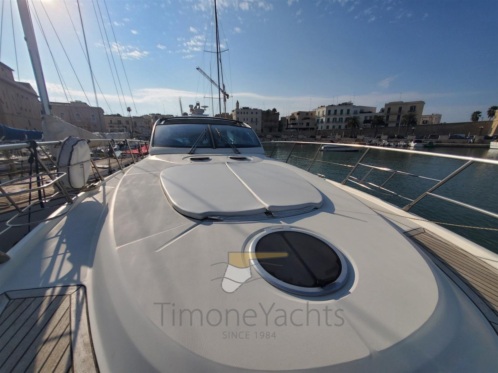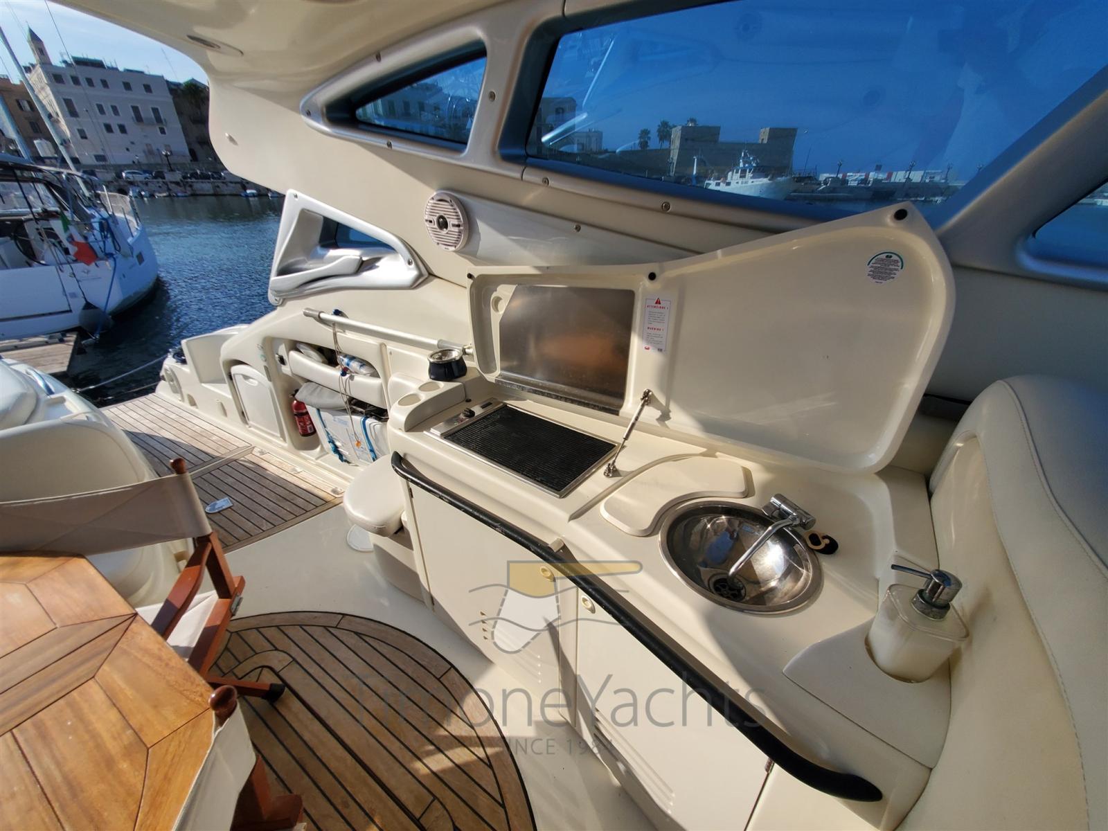 Hard top apribile elettricamente, gps Raymarine 12 pollici, antenna radar, pilota automatico, elica di prua,tromba, faro orientabile, impianto tv, garage apribile elettricamente, gruppo elettrogeno 11kw, passerella idraulica telescopica a scomparsa,doppio winch tonneggio di poppa, aria condizionata interna e pozzetto, pozzetto e plancetta di poppa in teak, frigorifero esterno ed interno,congelatore, grill esterno, wc elettrici.