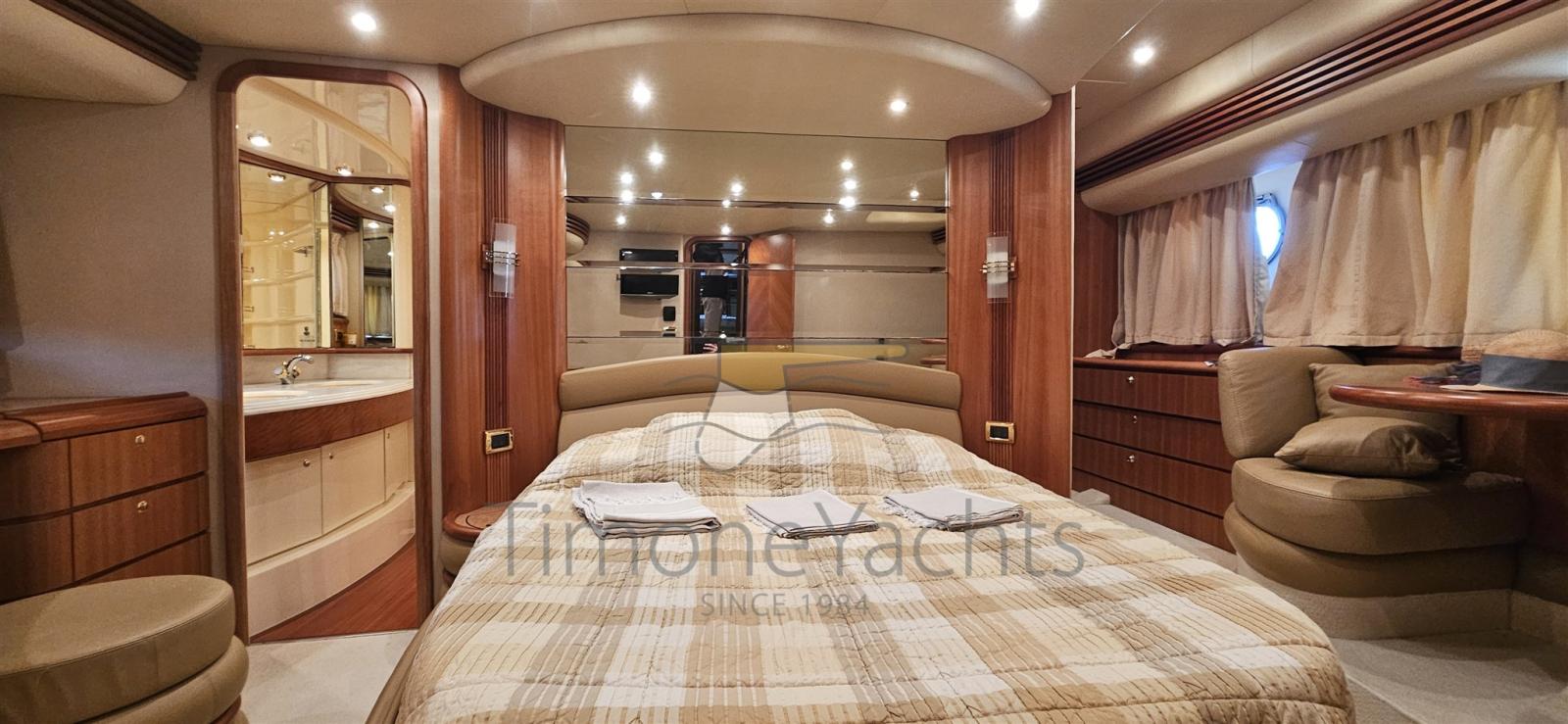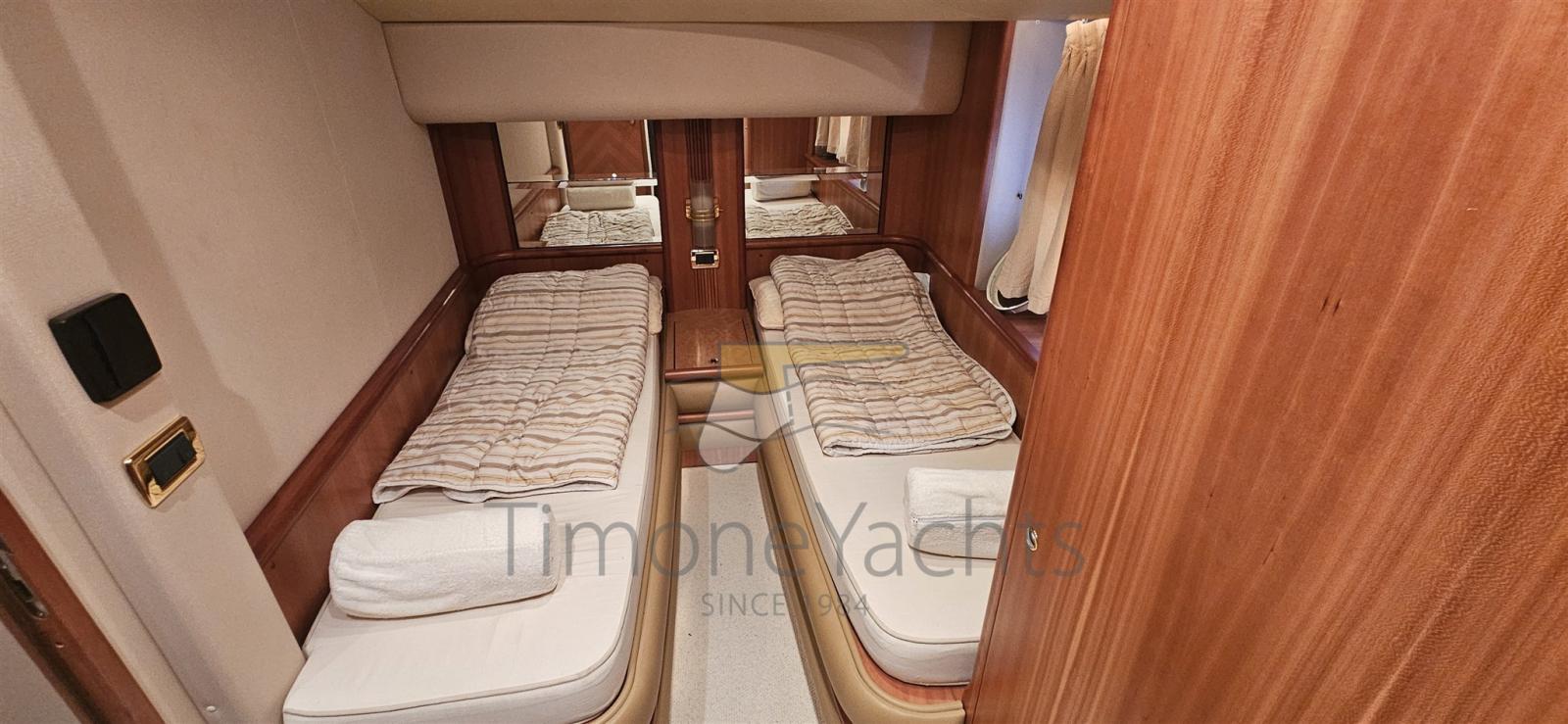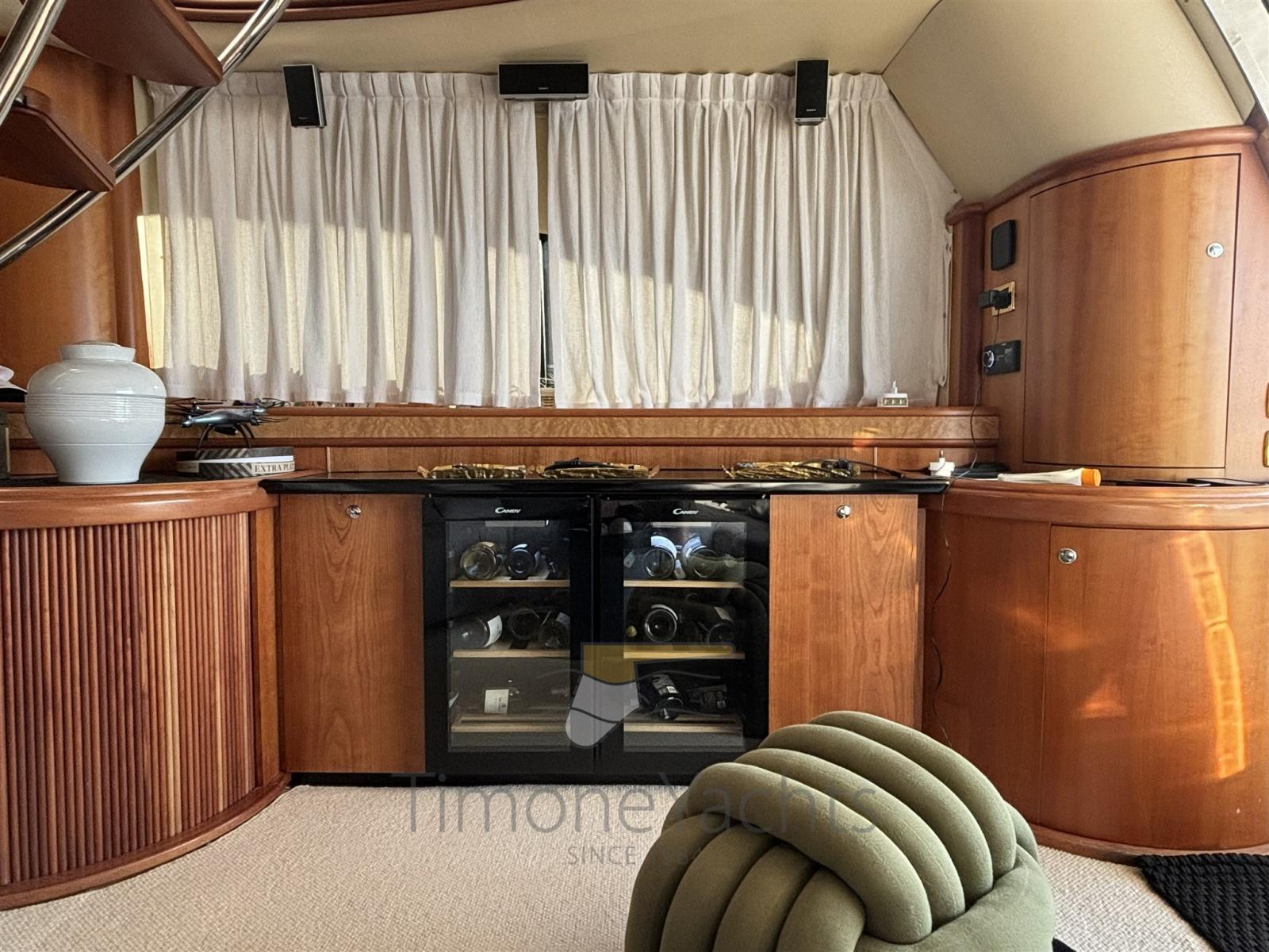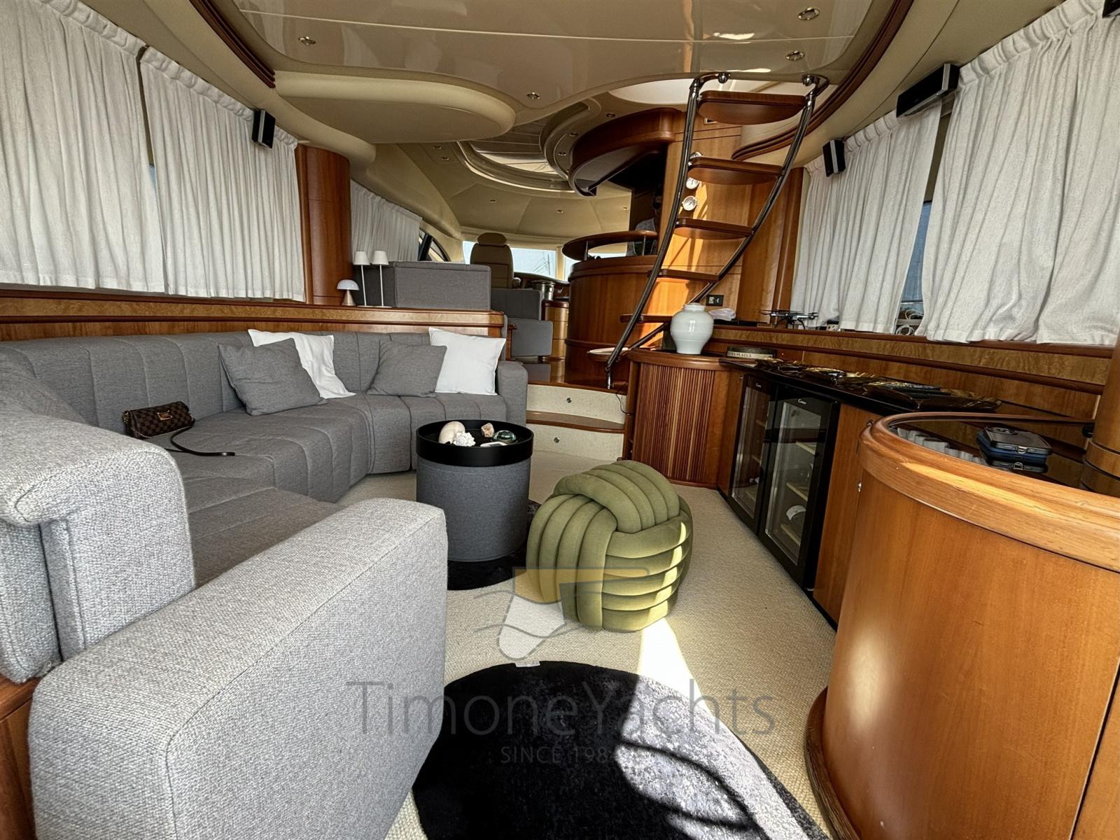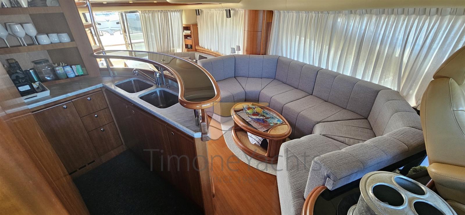Camminamenti laterali in teak, Faro orientabile, Gruette per moto d'acqua (sul fly bridge), Luci di cortesia, Luci subacquee, Passerella (a scomparsa), Porta laterale (di sbarco), Pozzetto Teak, Tavolo pozzetto, Winch tonneggio di poppa.