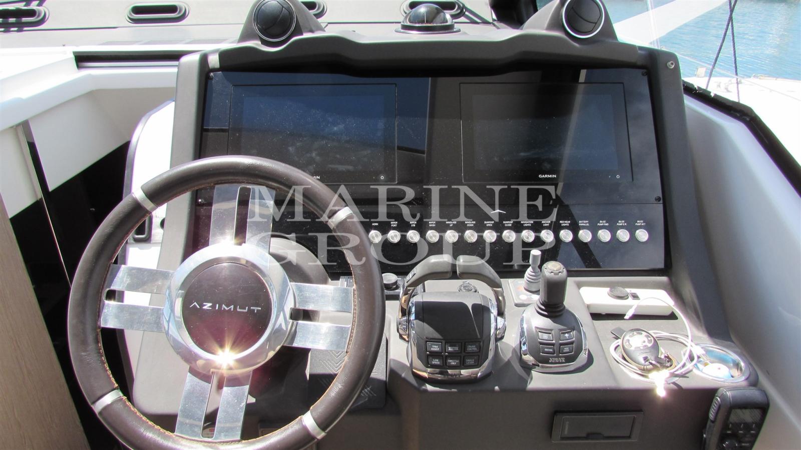 AIS (Garmin 800), Antenna radar, Comando motori elettronico, Contametri catena, DSC vhf, Joystick (Volvo Penta), Pilota automatico (Garmin), Plotter con antenna GPS (Garmin doppio display), Sedile Copilota.