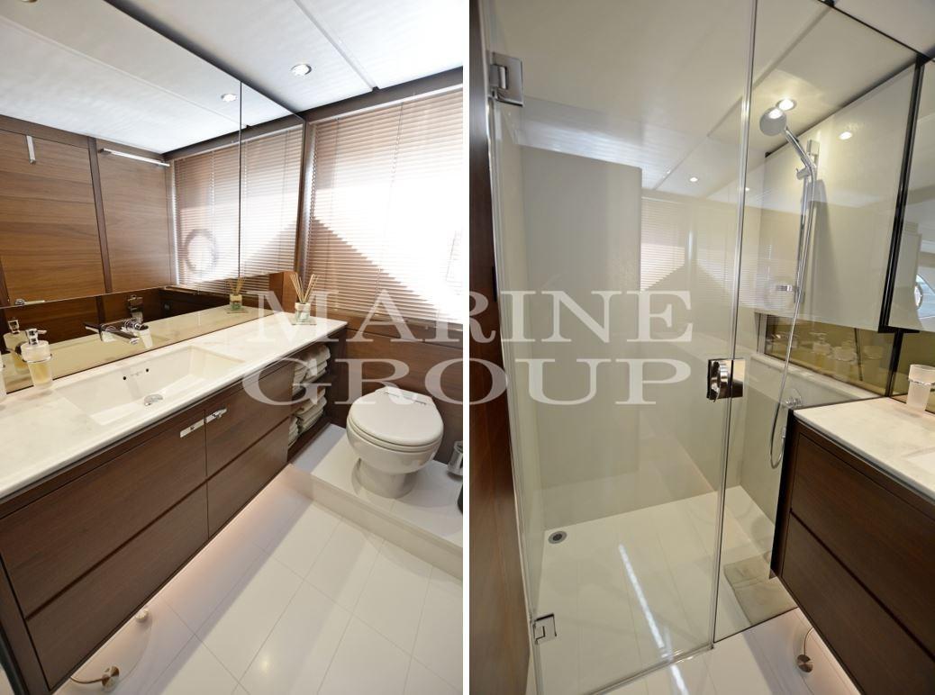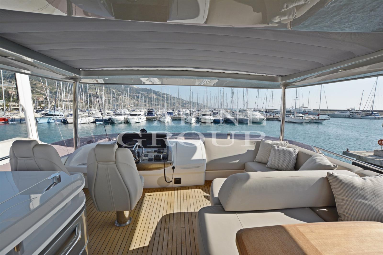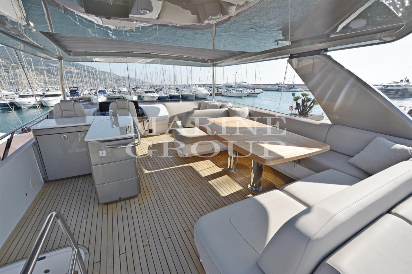 Gyro Stabilizzatore (Seakeeper 16) - Interni in noce satinato - Dissalatore - Eliche poppa e prua a velocità variabile - Aria condizionata caldo/freddo 106.000 BTU anche nei bagni - Aria conzionata cabina equipaggio 6.000 BTU - Passerella telescopica elettro-idraulica (3.5m) con tientibene automatici - TV SAT - Starlink - Tavolo sul Fly in teak - Tavolo in pozzetto in teak fisso - Zanzariere in tutti oblò apribili - Pompa 24v per il trasferimento carburante da un serbatoio all'altro - Upgrade pelle PUTTY nel divano in dinette e nel divanetto a fianco alla consolle - Coperture esterne sul fly e pozzetto in Grey Sunbrella - USB in salone, cucina, cabine di prua e ospiti gemelle, N.2 nella cabina armatoriale e nelle postazioni di guida - Tavolino interno (lato sinistro consolle) - Altoparlanti in pozzetto - Altoparlanti nella zona di prua - Salone con tv a scomparsa - Tv in cabina armatoriale - Cabina ospiti di prua con TV LED 28" con Radio/DVD/MP3 Fusion e Bluetooth - Cabina ospiti sinistra e dritta con TV LED 22" con Radio/DVD/MP3 Fusion e Bluetooth - TV in cabina equipaggio - Upgrade generatore Onan 19kW/50Hz al posto dello standard - Generatore ONAN 11kw/50Hz addizionale - Top cucina in Porcelain White Solid Surface - Prese continentali 220v/240v - Luci di poppa per ormeggio (montate sul Fly) - Lavatrice e asciugatrice separate - N.1 Telecamera in sala macchine - Cabina ospiti sinistra e dritta con letti singoli convertibili in matrimoniale - Cassaforte nella cabina armatoriale - Maniglie porte interne Turnstyle Sand Shagreen in bright chrome al posto delle standard - Sistema Audio System che include: sistema Harman Kardon 5.1 Blu-ray (con Bluetooth) e altoparlanti KEF in salone - Upgrade piastra a induzione in cucina - Terza stazione di controllo in pozzetto - Addizionali 20m di catena ancora da 10mm per un totale di 80m - Pavimenti in noce V Groove in cucina e in consolle - Allestimento cabina equipaggio (con 2 letti singoli) - Materiale White Line Brava sui pannelli della facciata della cucina al posto dello standard - Combinazione bidet-toilet (incluso cabina equipaggio) - Armadietti della cucina in noce satinato al posto degli standard - Hardtop sul fly con soft top elettrico (incluse luci regolabili) - Passaggi laterali e zona di prua in teak - Pacchetto ALLURE con HardTop che comprende dettagli con impunture a contrasto nei sedili della consolle interna e flybridge, Upgrade per luci esterne, Consolle e mobile bar del fly e HT e prese aria motori verniciati in Oyster Grey, Cuscineria esterna in schiuma reticolata, Schienali di prua regolabili, Luci subacquee specchio di poppa, Luci subacquee laterali di poppa