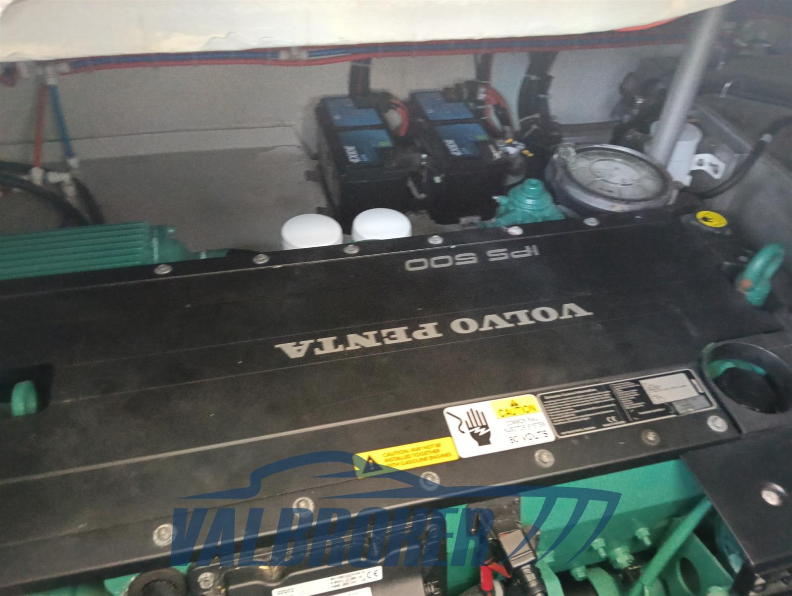 Flybridge dal design moderno, interni spaziosi e luminosi. Cuscineria nuova 2025. Full optional: antenna satellitare GLOMEX, aria condizionata, joystick Volvo Penta, elica di prua Side Power. 2xVolvo Penta IPS 500.