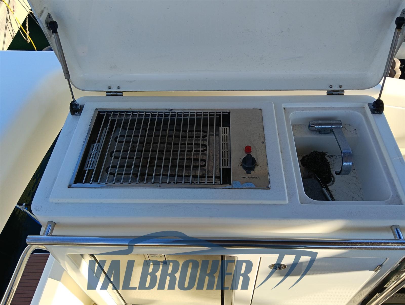 Allarme motore, Autoclave, 3 Batterie, Doccia esterna, Doppia timoneria, Elica di prua - bow thruster (Side Power), Faro orientabile (Osculati), Flap elettrici, Indicatori Flaps (Bennett), Luci di cortesia, Passerella (teak), Piattaforma (teak), Pompa di sentina automatica, Porta ingresso, Pozzetto Teak, Presa 220V banchina, Salpa Ancore Elettrico, Scaletta da bagno, Tavolo pozzetto, Tavolo Salone Abbattibile, Tientibene con cancelletti, Tromba, 3 Winch Elettrico, Winch tonneggio di poppa, Winch tonneggio di prua.