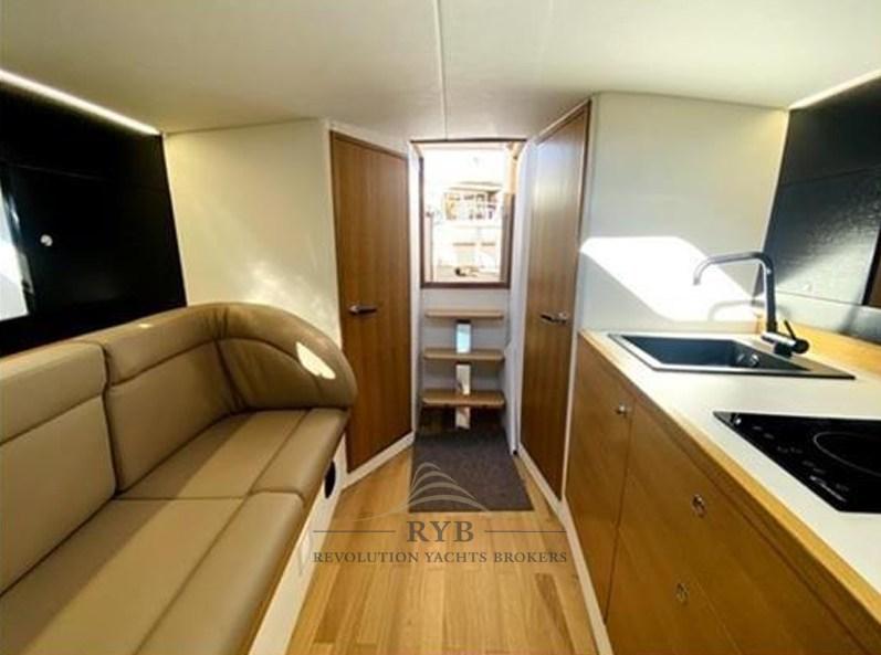 Allarme motore, Allarme sentina, Autoclave, Doccia esterna, Flap elettrici, Luci di cortesia, Piattaforma, Pompa di sentina automatica, Presa 220V banchina, Rollbar, Salpa Ancore Elettrico (50 metri catena nuova 2025), Scaletta da bagno, Tavolo pozzetto.