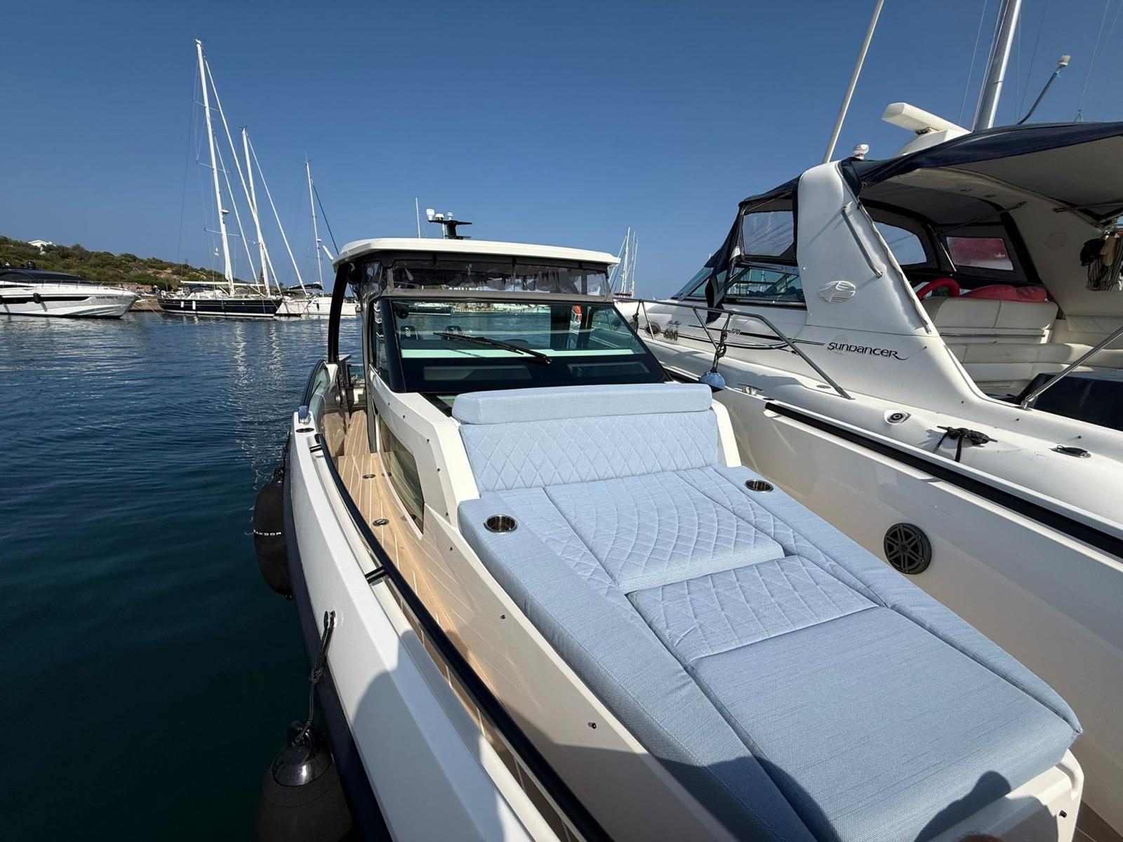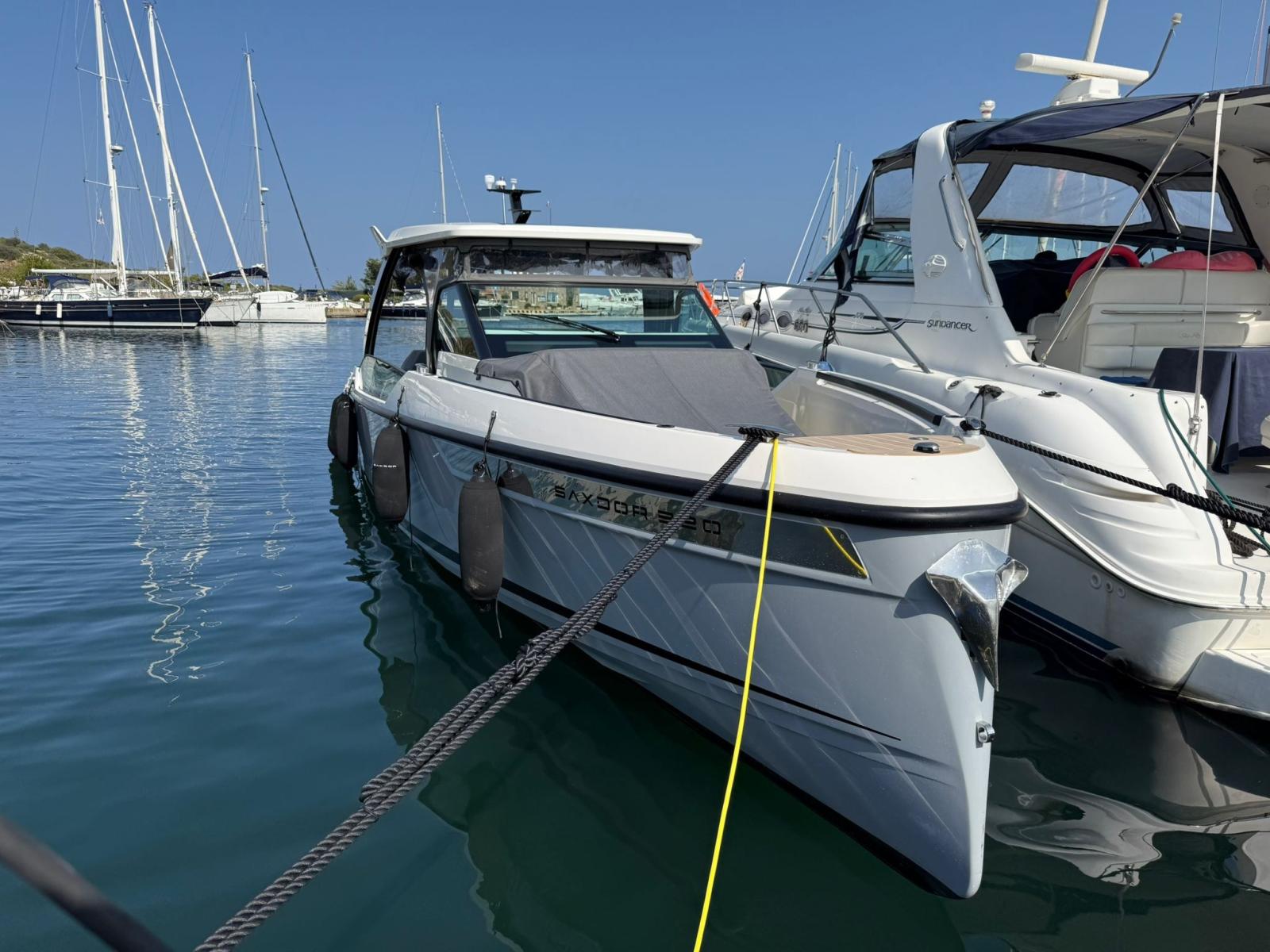 Questo Saxdor 320 GTO modello 2025 è in condizioni impeccabili, con pochissime ore di utilizzo. Lo scafo grigio abbinato alla tappezzeria blu Florida crea un contrasto elegante e moderno, ulteriormente valorizzato dalla pavimentazione in teak sintetico. Le murate abbattibili e la dinette trasformabile in un ampio prendisole rendono questo walkaround sportivo estremamente versatile: perfetto per crociere veloci a 30 nodi come per soste rilassanti in rada. Sottocoperta, una cabina matrimoniale di prua con WC elettrico separato garantisce comfort e privacy. A completare l’equipaggiamento, un impianto audio premium da prua a poppa con subwoofer e una piastra a induzione in coperta. Immediatamente disponibile, assolutamente da vedere.