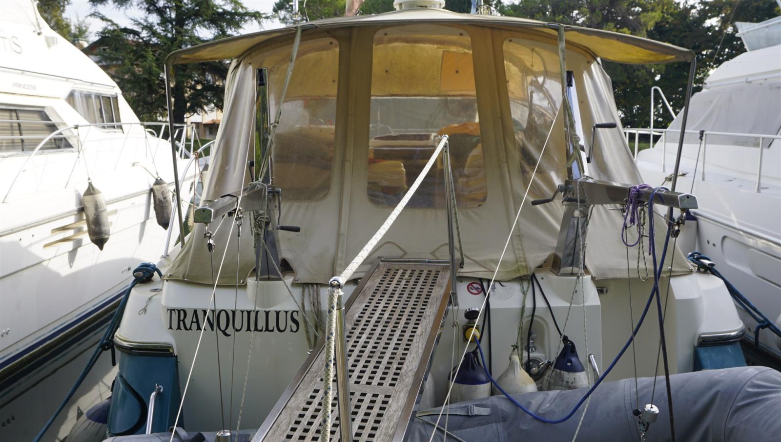 Doccia esterna, Flap fissi, Gruette, Motore fuoribordo per tender (TOHATSU), Passerella, Presa 220V banchina, Salpa Ancore Elettrico, Scaletta da bagno, Tavolo pozzetto, Tender (AVON), Tromba.