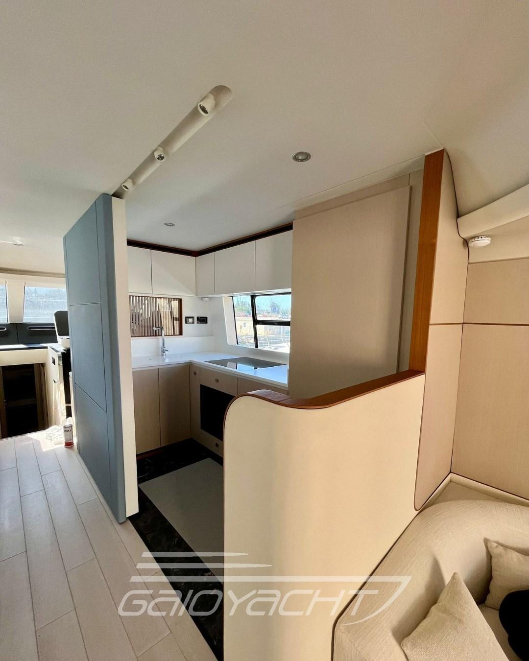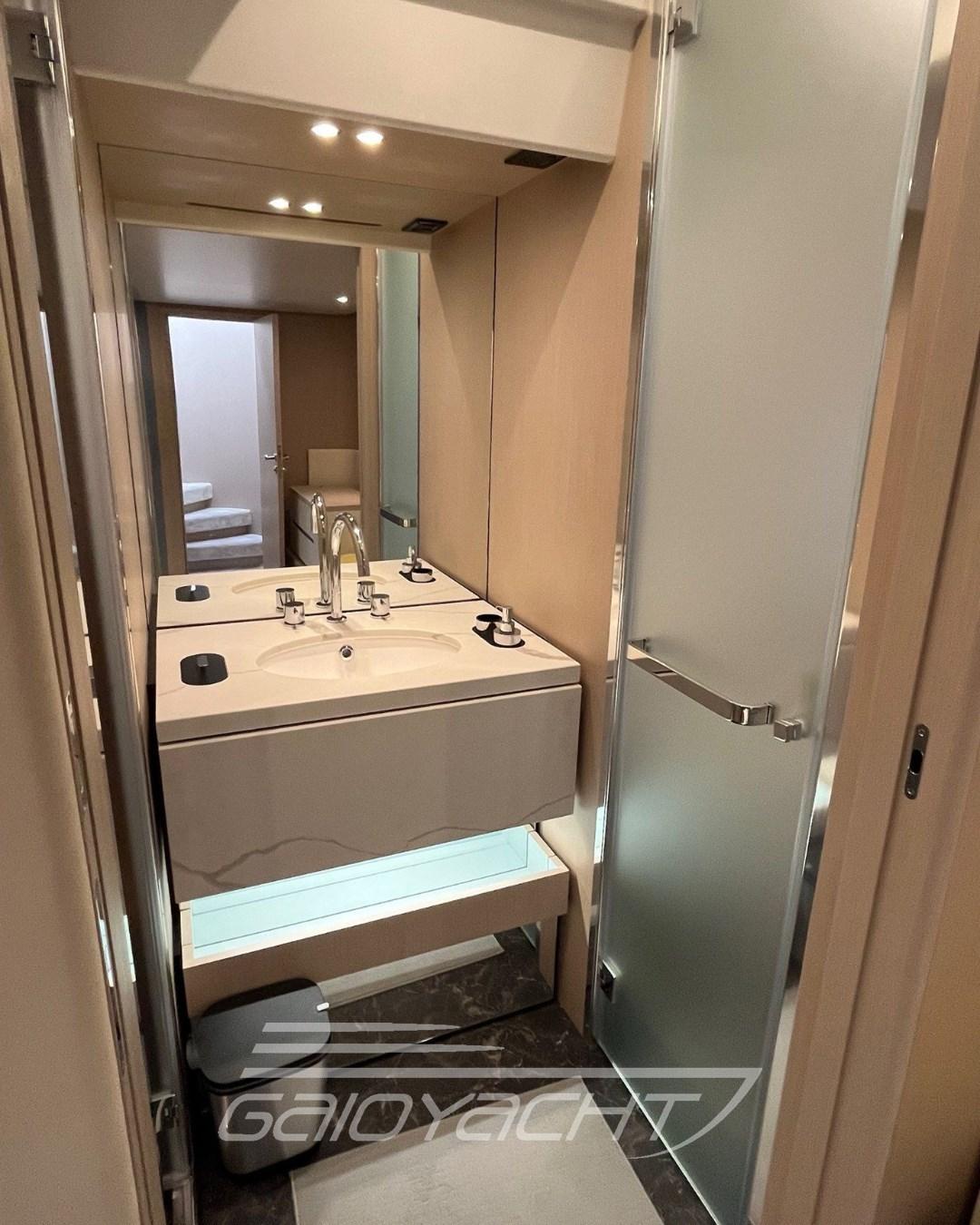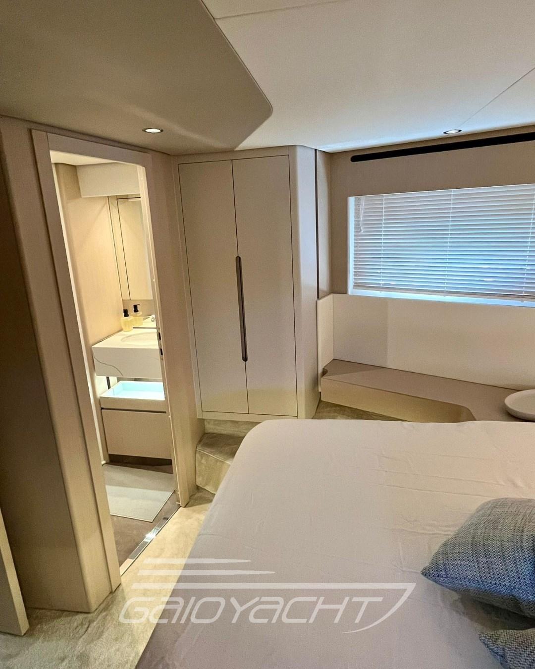 Tenda a rullo elettrica in pozzetto; Tavolo aggiuntivo di prua in teak; Top lavabo in quarzite in tutti i bagni; Pacchetto Garmin Gold; Sistema Volvo Interceptor; Filtro Racor per generatore; Predisposizione per desalinizzatore; Isolatore galvanico; Teak sul fly e prua.