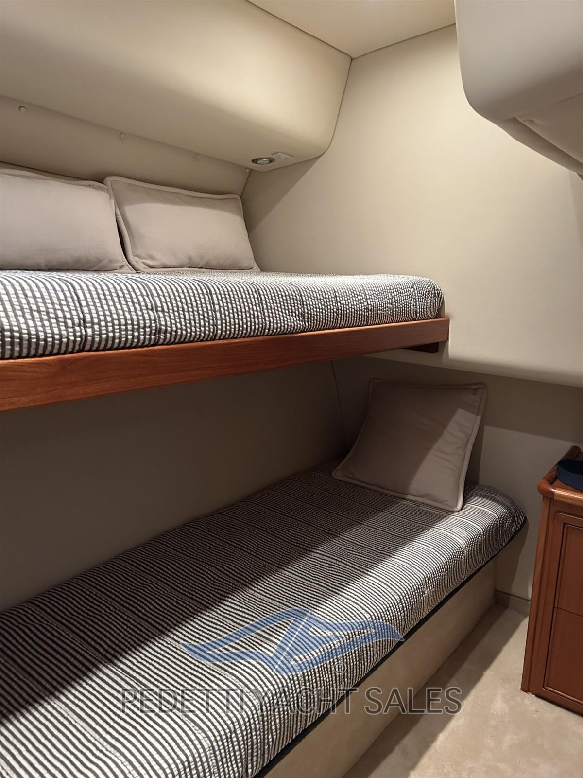 Allarme fumo/gas, Allarme motore, Allarme sentina, Autoclave, Autogonfiabile (Scadenza 2026), 4 Batterie (Sostituite 2025), Cavo corrente di banchina, Doccia esterna, Elica di prua - bow thruster (Side power), Flap elettrici (Bennett), Hard top (su flybridge), Impianto antincendio, Indicatori Flaps, Lavandino nel Pozzetto, Luci di cortesia, Passerella (Idraulica due sfili), Piattaforma, 4 Pompa di sentina automatica, Pompa Lavaggio Ponte, Porta ingresso, Pozzetto Teak, Presa 220V banchina, Salpa Ancore Elettrico, Scaletta da bagno, Tavolo Salone Abbattibile, Tromba.