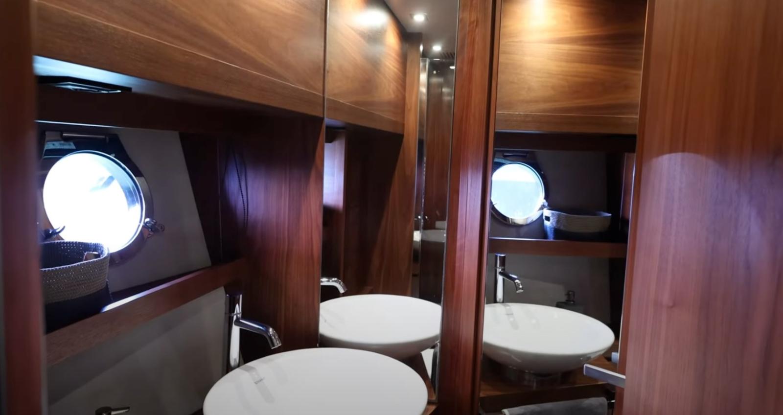 Cabina armatoriale con letto matrimoniale e bagno - cabina Vip con letto matrimoniale e bagno - cabina ospiti con due letti in piano e bagno.