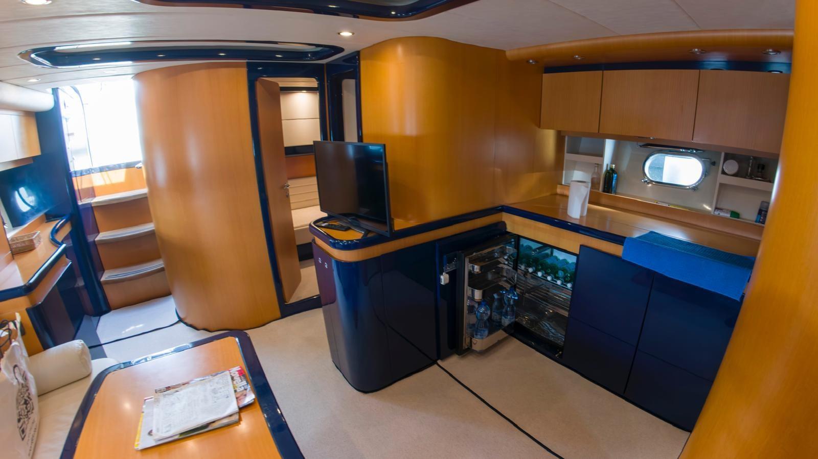 Allarme fumo/gas, Allarme motore, Allarme sentina, Autoclave, 6 Batterie, Doccia esterna, Flap idraulici, Impianto antincendio, Indicatori Flaps, Lavaggio catena, Lavandino nel Pozzetto, Luci di cortesia, Passerella (Idraulica Besenzoni), Piattaforma, Pompa di sentina automatica, Pompa di sentina manuale, Presa 220V banchina, Rollbar, Salpa Ancore Elettrico, Scaletta da bagno, Tavolo pozzetto, Winch tonneggio di poppa.