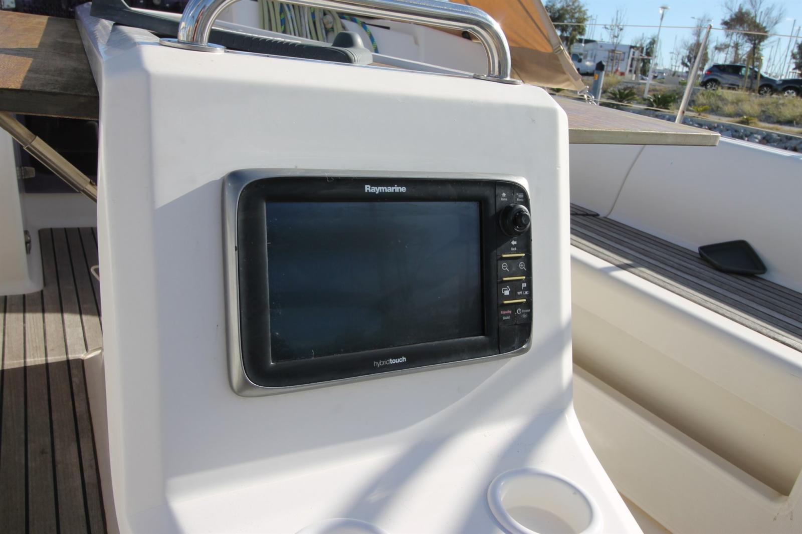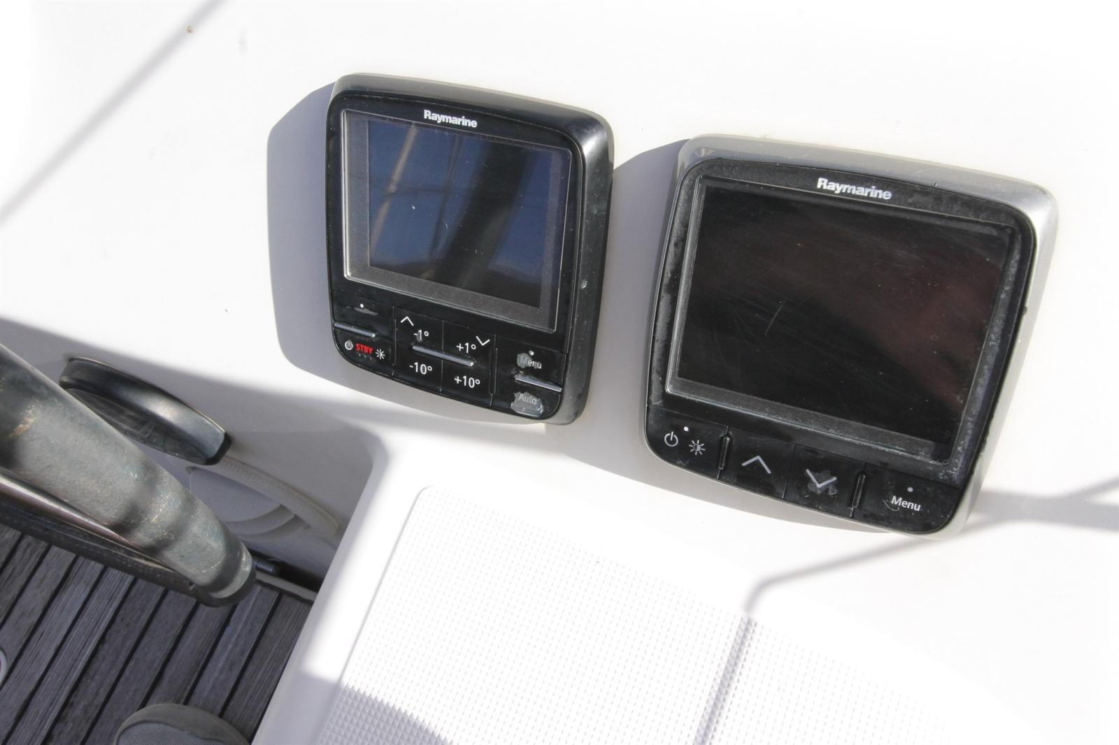 AIS (en reception), 2 Bussola, Contamiglia (Raymarine I70), DSC vhf (aymarine RAY49 E), GPS (Raymarine série A), Pilota a vento, Pilota automatico (Raymarine P70 + télécommande), Sonar (Raymarine I70), Stazione vento (Raymarine I70, aérien remplacé en 2025).