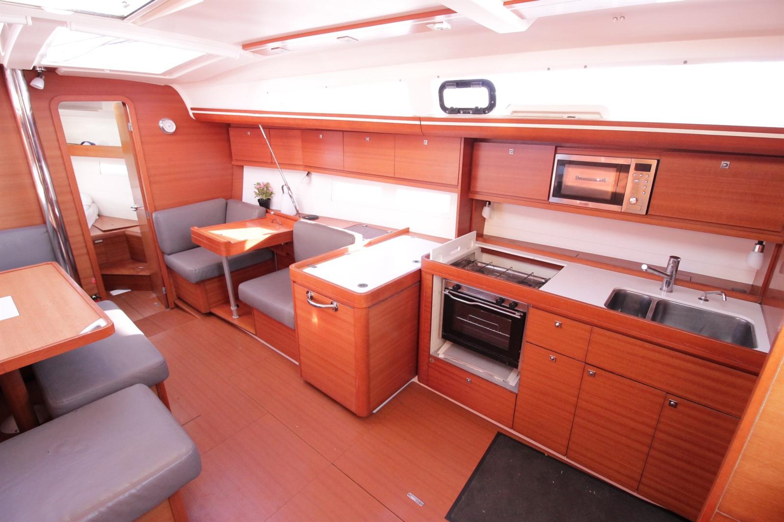 L'azienda PHILIPPE PLAISANCE – 100% voiliers è lieta di offrirti una DUFOUR 410 Grand Large, in versione 3 cabine / 1 bagno. Con la sua splendida linea sull'acqua, l'interno moderno e luminoso, e l'eccellente maneggevolezza al timone, questa barca a vela è un vero piacere da manovrare e ha tutto. La barca beneficia di un motore completamente revisionato (a vela, scambiatore, gomito di scarico, elica pieghevole). Il set di vele è completo, comprendendo una nuova genoa, uno spinnaker asimmetrico con bompru, oltre a una vela di sterzo su un forestay sganciabile. Il comfort è onnipresente: abitacolo spazioso con copertura solare, gonna posteriore apribile, doppio volante, berlina cabriolet e grande abitacolo anteriore. Posto di cuccetta e consegna possibili.