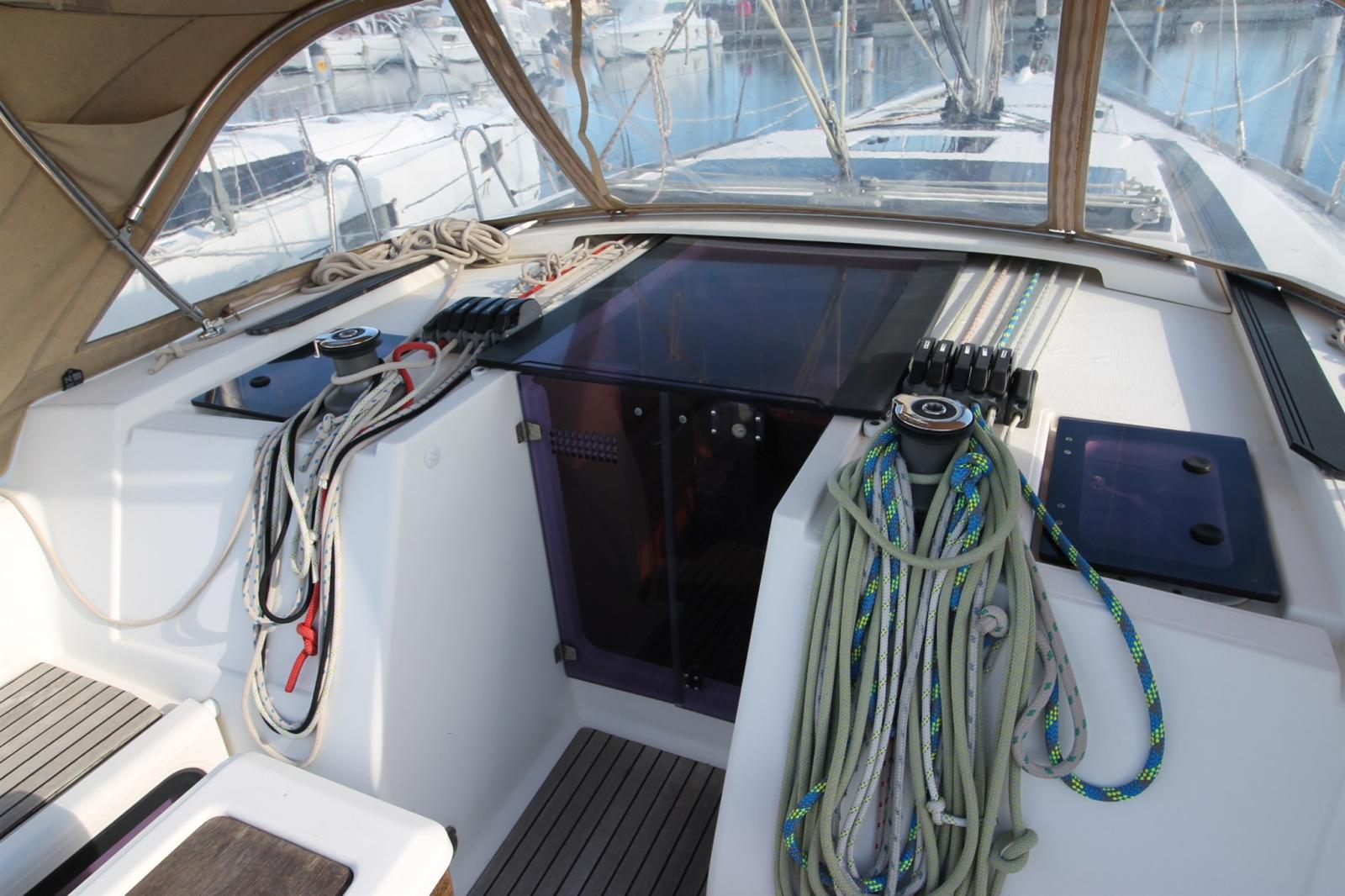Cuscineria Pozzetto, Prendisole aggiunto (dans cockpit), Telo copriconsolle (de table de cockpit), Zanzariere (pour 100% des hublots ouvrants).