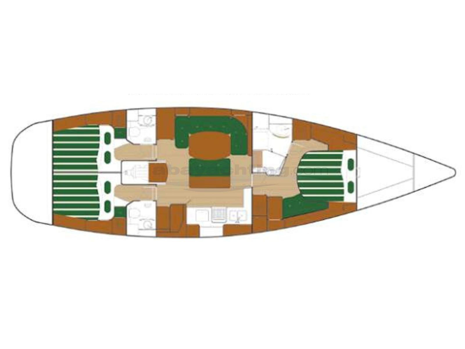 Beneteau 50 usato. Layout: 3 cabine e 3 bagni + dinette trasformabile.