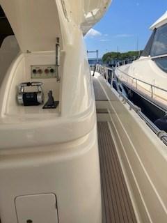 Allarme fumo/gas, Allarme motore, Allarme sentina, 2 Ancora (Bruce 50 Kg | Delta con catene maggiorate 2x100 m da 14mm), Autoclave, Camminamenti laterali in teak, Canoa, 2 Caricabatterie (Mastervolt e Mastervolt Combi), 2 Doccia esterna (pozzetto), Doppia timoneria, 2 Faro orientabile (manuale sul rollbar | elettrico sul flybridge), Garage per tender, Gruette per tender su fly (600 Kg), Impianto antincendio, Lavaggio catena, 2 Lavandino nel Pozzetto (e sul flybridge), Luci di cortesia, Luci subacquee (a poppa), Passerella (Besenzoni), Piattaforma, Pompa di sentina automatica, Pompa di sentina manuale, Porta ingresso, Porta laterale, Pozzetto Teak, Presa 220V banchina, Presa acqua banchina, Salpa Ancore Elettrico, Scaletta da bagno (con maniglione in acciaio inox), Stabilizzatori (giroscopico), Tavolo pozzetto (in Teak allungabile a 8 posti), Tender (Williams 385), Tromba.