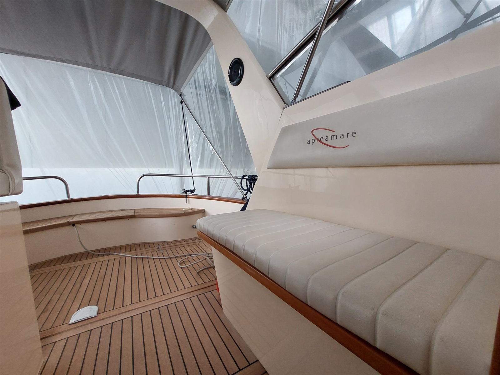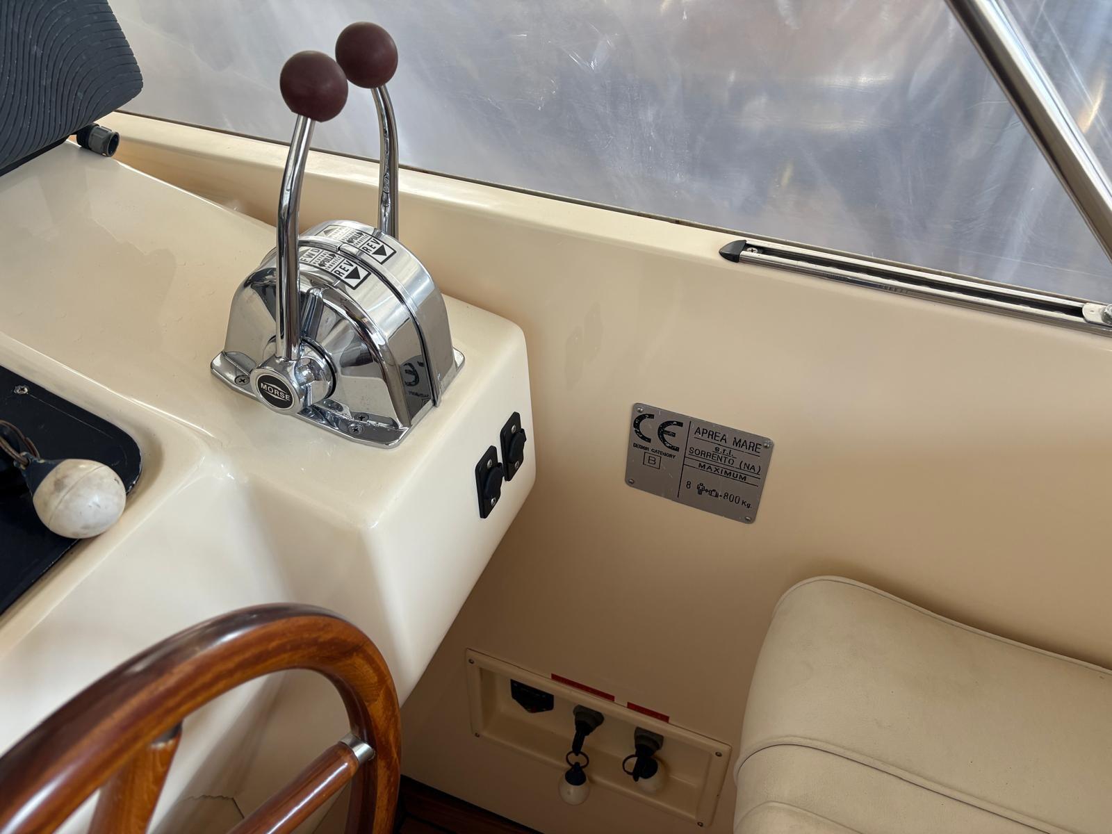 Lo stile unico di Apreamare è la conseguenza di un binomio unico nel mondo della nautica: l’arte artigianale che da cinque generazioni si tramanda tra componenti della famiglia Aprea e la modernità scaturente dallo sviluppo di soluzioni avanzate e dal design raffinato. E’ compreso in questa formula, che associa la comodita’ del gozzo alla velocità dello yacht, il segreto della popolarita’ dei cantieri Apreamare. Grazie alla sua dinamicità e ad una esperienza plurisecolare nel settore, Apreamare unisce perfettamente le linee eleganti delle tradizionali barche da pesca con un anima innovativa dando l’pportunita’di mantenere al timone quell’allure ricercata senza rinunciare alla comodità degli interni. Affidabili e confortevoli, le imbarcazioni Apreamare interpretano uno stile italiano e uno charme tutto mediterraneo. Uniche nel loro genere queste imbarcazioni sono curate nei minimi particolari, nel pieno rispetto dell’antica tradizione nautica sorrentina dal 1849, si ritrovano in Premiere Dame, che è stata per dieci anni sul lago, in acqua dolce quindi, e poi sempre rimessata al coperto ad Olbia, per un utilizzo minimo e molto attento. Pari al nuovo.