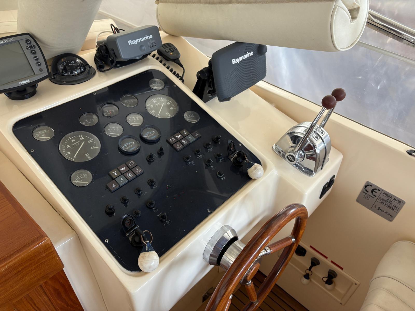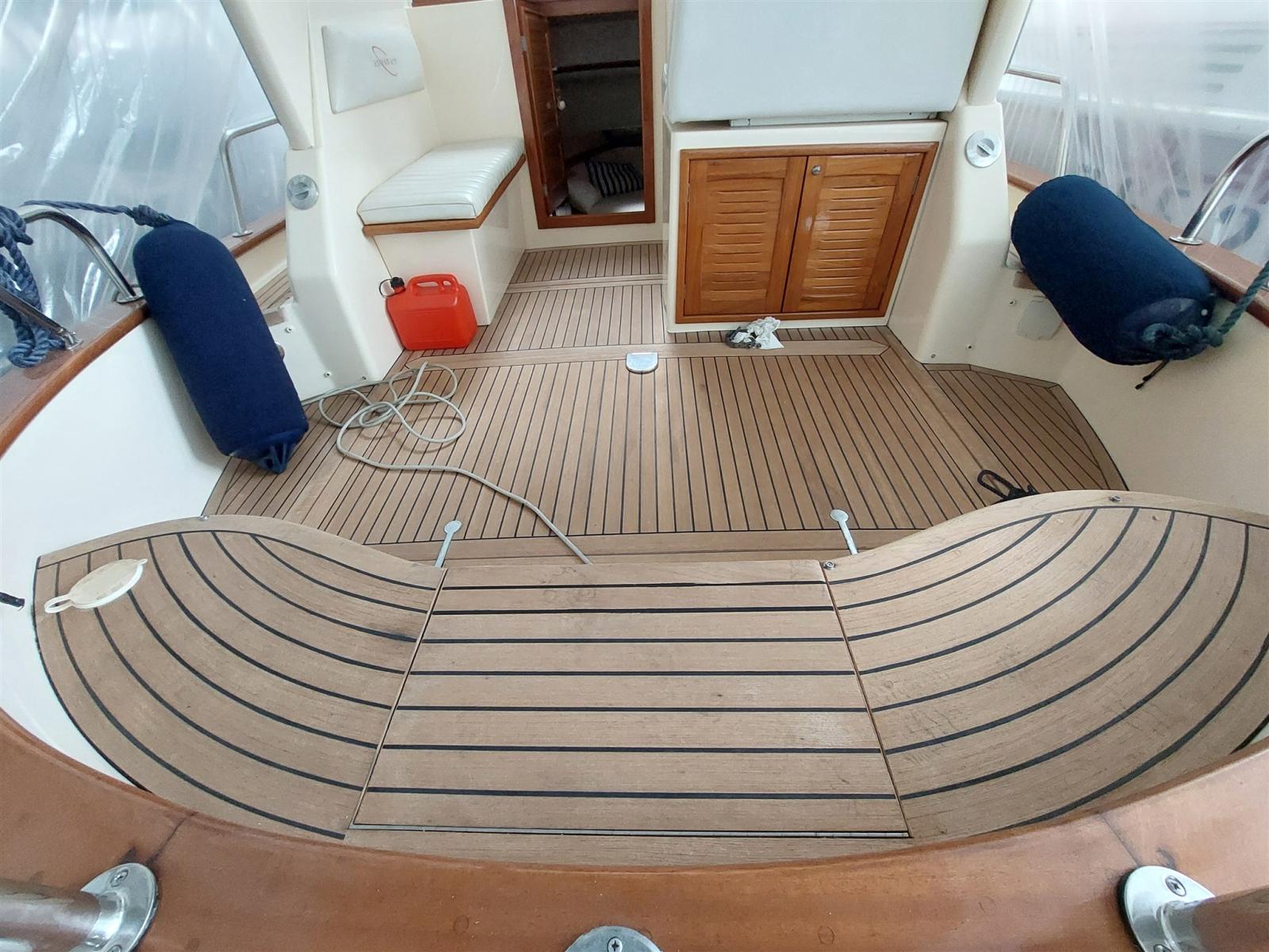2 Allarme motore, Allarme sentina, Autoclave, Camminamenti laterali in teak, Cavo corrente di banchina, Colorazione speciale (Blu navy), Corrimano, Doccia esterna, 2 Flap idraulici, 2 Indicatori Flaps, Lavandino nel Pozzetto, Luci di cortesia, Parabordi, Passerella, Piattaforma, Pompa di sentina automatica, Ponte in teak, Porta ingresso, Pozzetto Teak, Presa 220V banchina, Rollbar, Salpa Ancore Elettrico, Scaletta da bagno, Tavolo pozzetto, Tromba, Winch tonneggio di prua.
