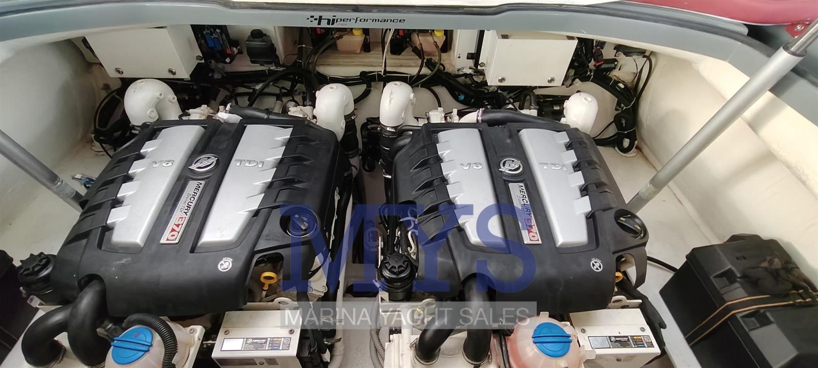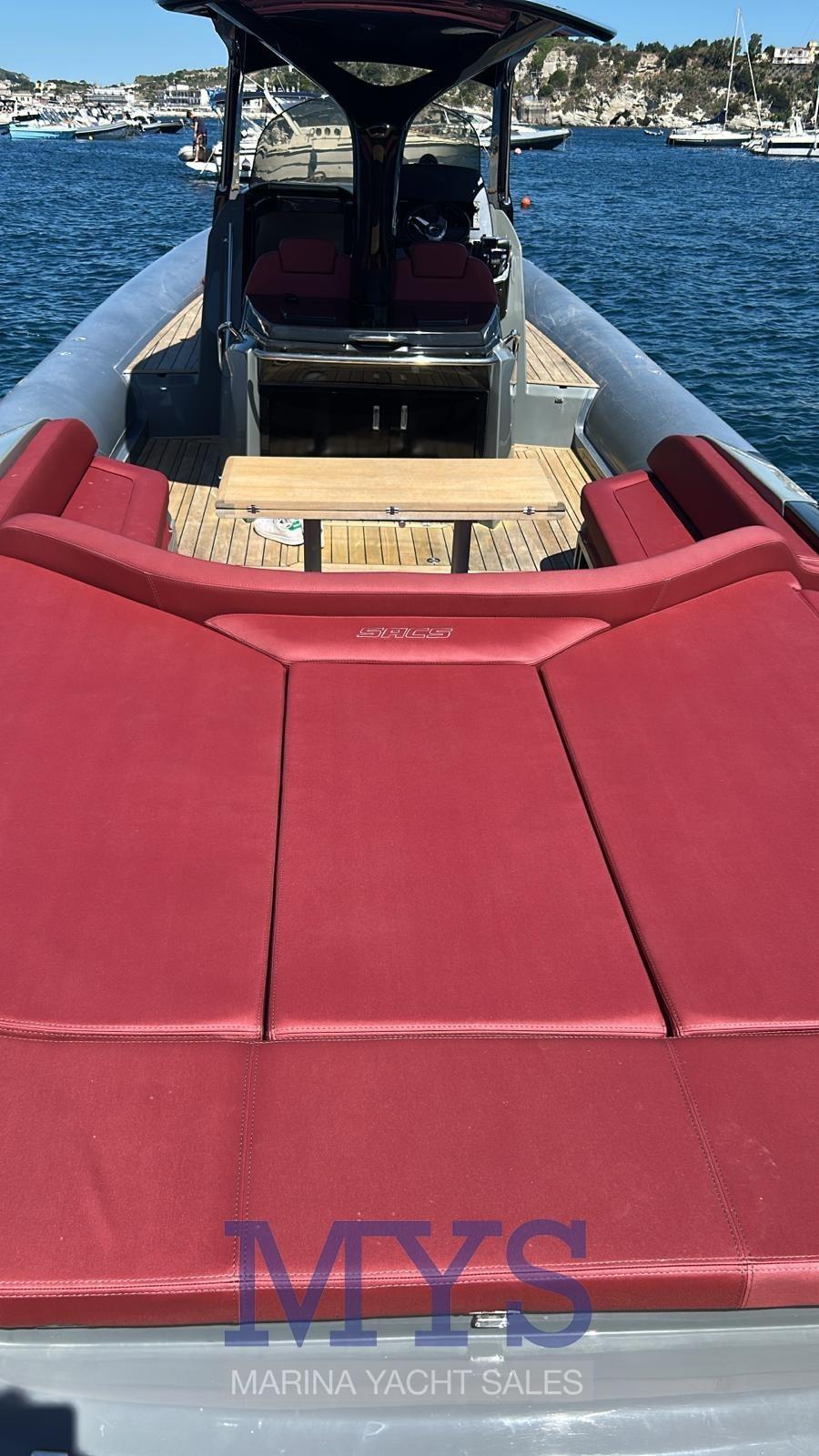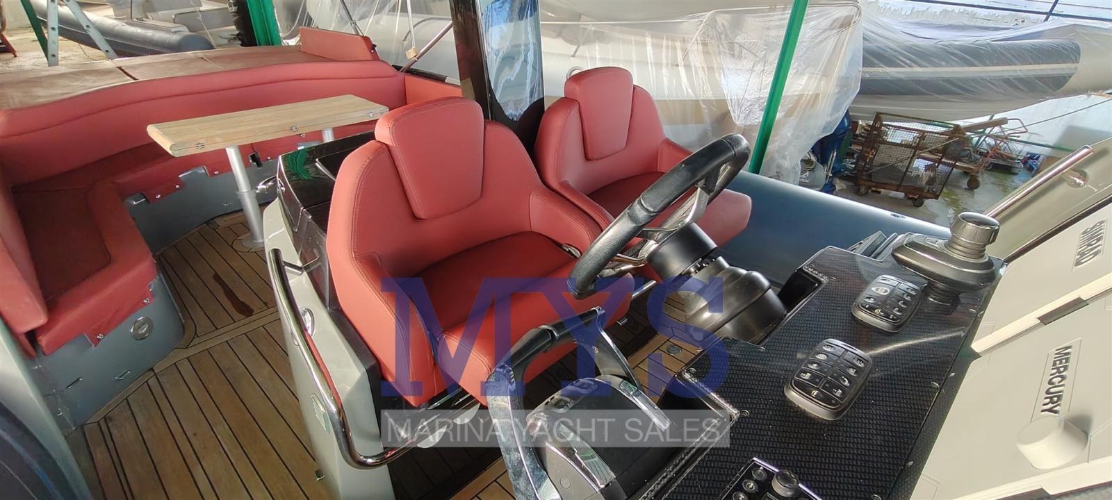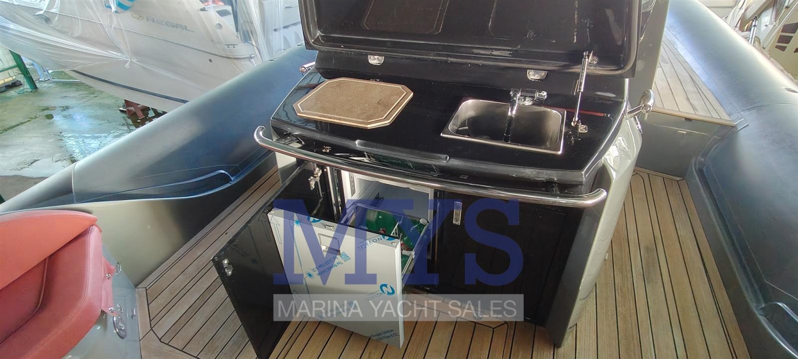 Allarme motore, Allarme sentina, Alternatore, Apertura Vano Motore Elettrica, Autoclave, Camminamenti laterali in teak, Doccia esterna, Lavandino nel Pozzetto, Luci di cortesia, Piattaforma, Pozzetto Teak, Presa 220V banchina, Salpa Ancore Elettrico, Scaletta da bagno, Tavolo pozzetto (abbattibile manualmente), Tromba, T-Top.