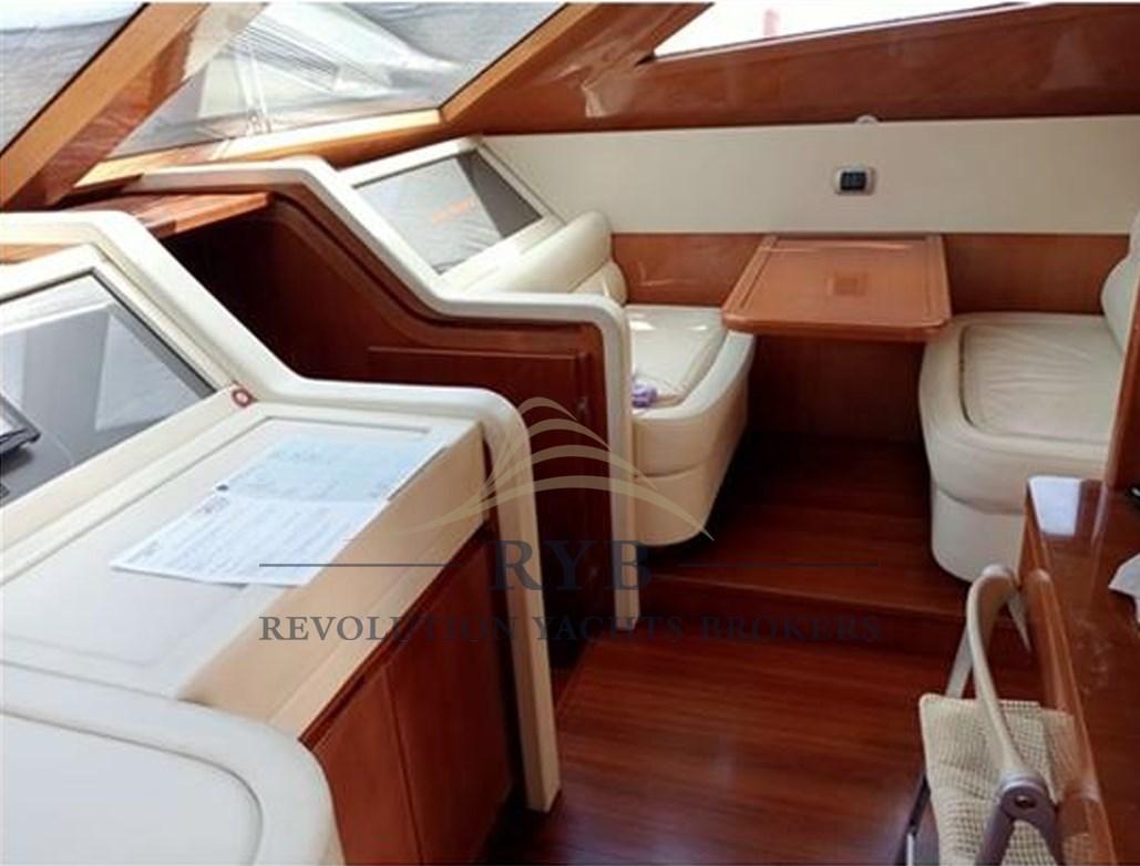 Adiacente al salone, la zona pranzo è arredata con un ampio tavolo e sedie, perfetta per momenti conviviali. Dal disimpegno, si accede sia al camminamento laterale che alle scale che conducono al ponte cabine e al flybridge.