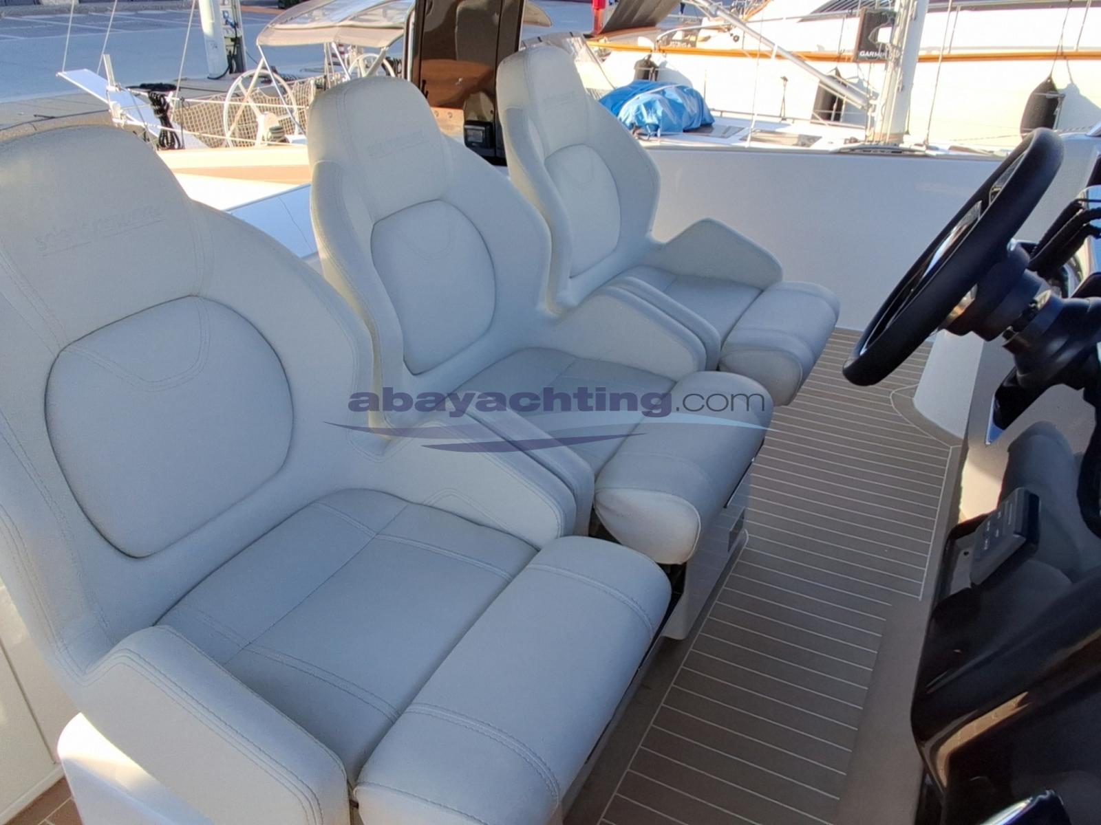 Cuscineria completa, Cuscineria di poppa, Cuscineria di prua, 2 Prendisole aggiunto (poppa e prua), Telo copriconsolle, Tenda Elettrica (Integrato nel T-Top), Tendalino (a prua con pali in carbonio).