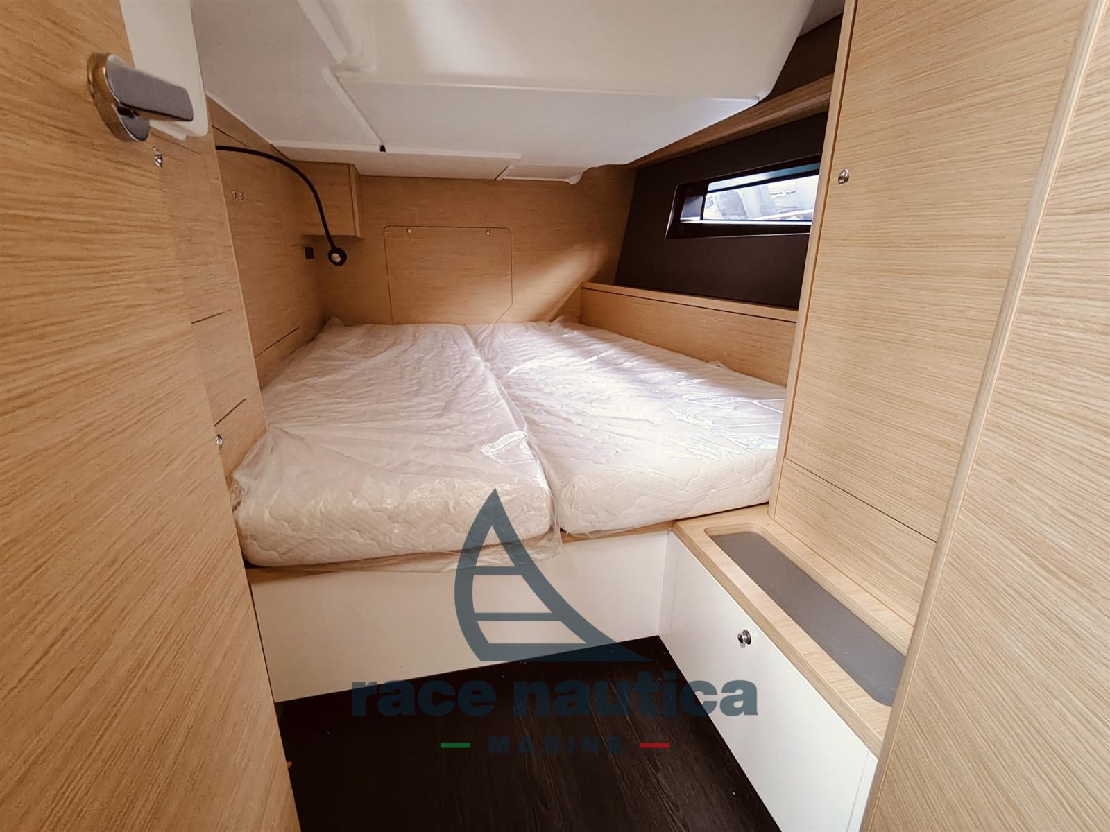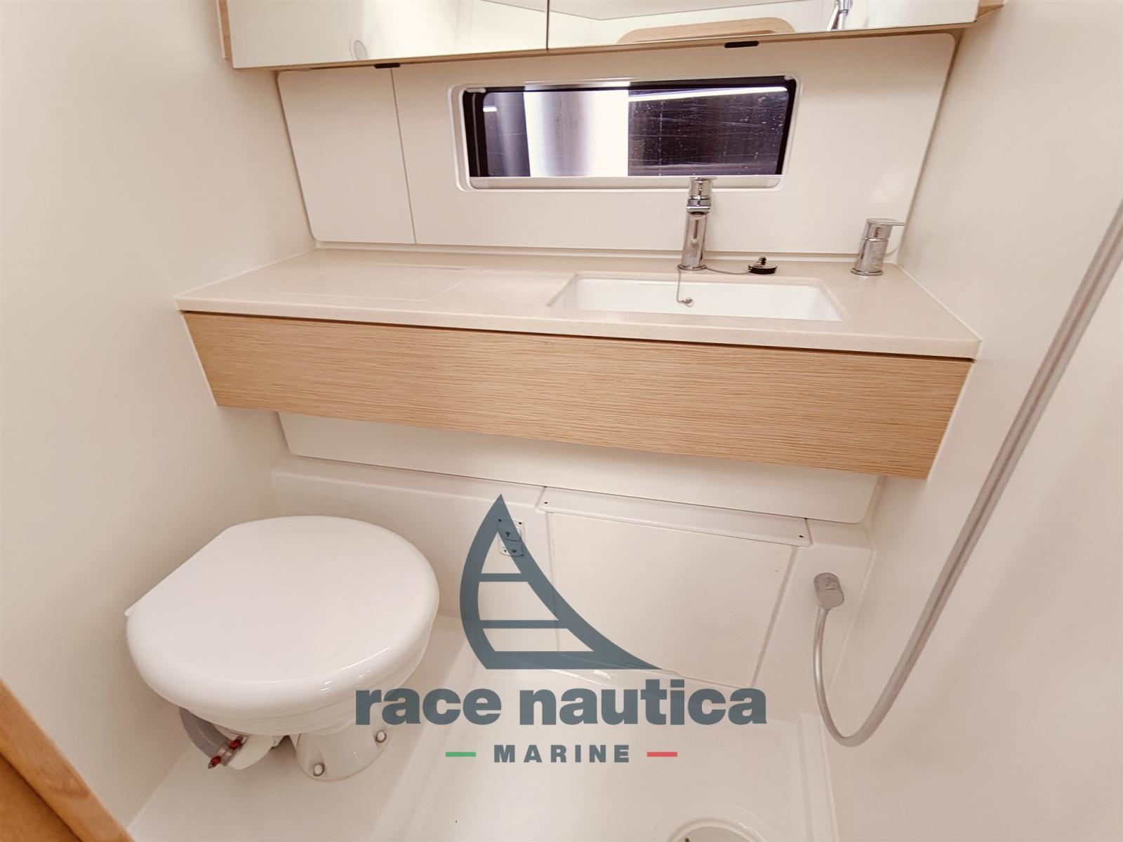 Ocean version, full batten mainsail and self-tacking jib in Dacron, mainsail sheet on deckhouse with ropes (no traveller), 2 winches on deckhouse with organisers and stoppers, continuous reefing system from cockpit, bow roller, fixed backstay, 1000W remote-controlled windlass, lazy bag, Lazy Jacks, Rigid vang, 2000W battery charger and inverter socket, Ambiance Signature, Third bathroom with shower, Movable bulkhead in the bow, Yanmar 57HP Saildrive engine, Tunnel bow thruster, Triton 2‘ multifunction on the left, 10’ GPS multifunction, Autopilot with NAC3 control, VHF V20S, Zeus 3s 12" GPS upgrade on left and right of instrument panel, VHF V-60B with integrated AIS transmitter and receiver, WR10 remote control, T50 electric winch on port side deckhouse for mainsail halyard, Extra porthole in cockpit for aft cabin, Stainless steel bow protection, 20 kg anchor with 30 m chain and 40 m three-strand rope, 6 fenders, 3 mooring ropes, difference for entire 50 m chain instead of rope, dinette table convertible into bed, Classic cushions, Outdoor barbecue and sink in aft seating area, Additional water tank in bow, 4 electric toilets.