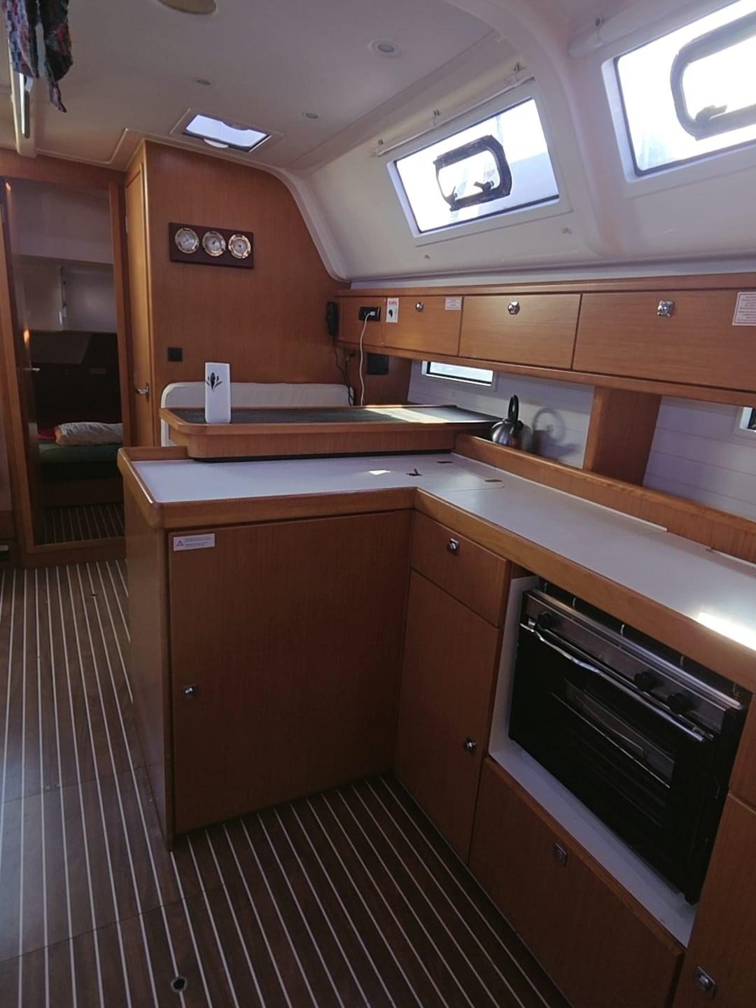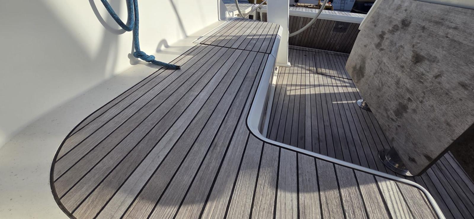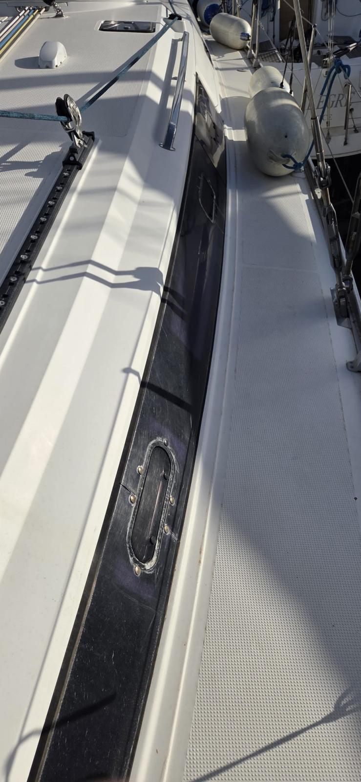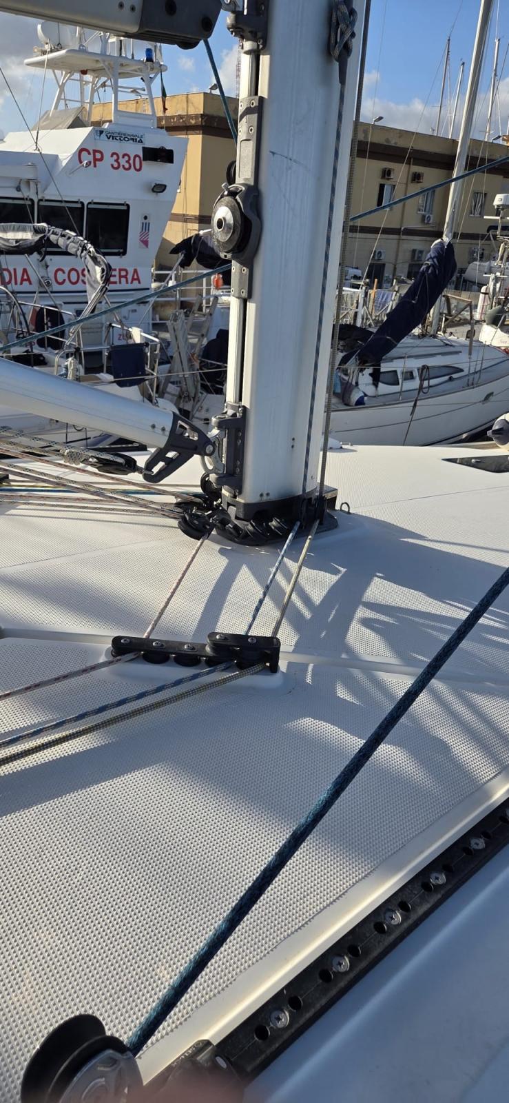 3 Batterie (1x 88 Ah, + servizi 2x 140 Ah), Doccia esterna, Doppia timoneria, 8 Parabordi, Piattaforma (plancette abbattibili), Pompa di sentina manuale, Pozzetto Teak (con tavolino in legno), Salpa Ancore Elettrico, 4 Winch (2 winches drizze con self-tailing, 2 winches scotte genoa con self-tailing, 2 maniglie winches).