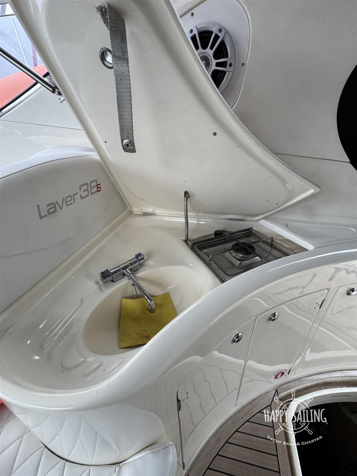 Autoclave, Colorazione speciale (Grigio metallizzato), Doccia esterna, Flap idraulici, Garage per tender, Lavandino nel Pozzetto, Parabordi, Passerella, Piattaforma, Pompa di sentina automatica, Pozzetto Teak, Presa 220V banchina, Raddrizzatore, Rollbar, Salpa Ancore Elettrico, Scaletta da bagno, Tavolo pozzetto.