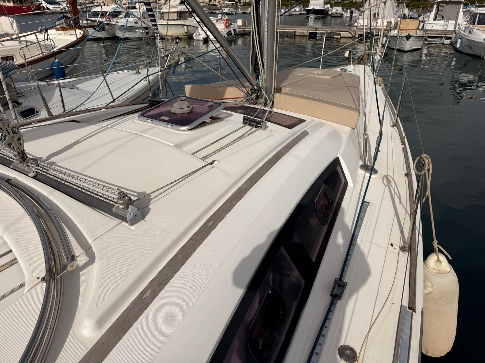 Allarme motore, Ancora (ROCNA), Autoclave, 3 Batterie ((2 SERVIZI X 140 AH - 1 MOTORE 95 AH)), Cavo corrente di banchina, Doccia esterna, Doppia timoneria, Parabordi, Piattaforma, Pompa di sentina manuale, Porta ingresso, Presa 220V banchina, Raddrizzatore, Salpa Ancore Elettrico, Sartiame spiroidale, Scaletta da bagno, Supporto motore fuoribordo, Tavolo pozzetto, Tavolo Salone Abbattibile, 3 Winch (1 X HARKEN 40 - 2 X HARKEN 46), Winch Elettrico (HARKEN 40).