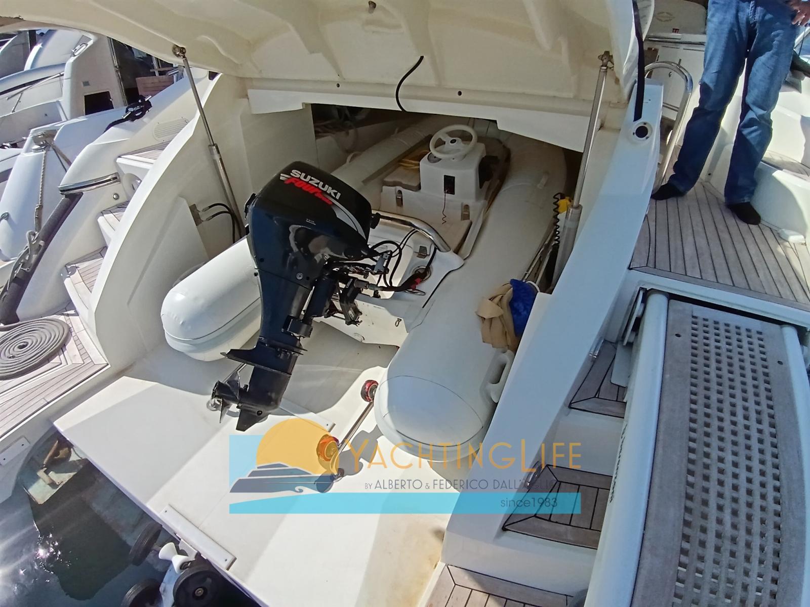 Allarme motore, Allarme sentina, Apertura Vano Motore Elettrica, Autoclave, 10 Batterie (2025), Doccia esterna, Flap idraulici, Garage per tender, Hard top, Impianto antincendio, Indicatori Flaps, Luci di cortesia, Passerella (idraulica), Piattaforma, Pompa di sentina automatica, Pozzetto Teak, Presa 220V banchina, Salpa Ancore Elettrico, Scaletta da bagno, Tavolo pozzetto, Tromba, Winch tonneggio di poppa.
